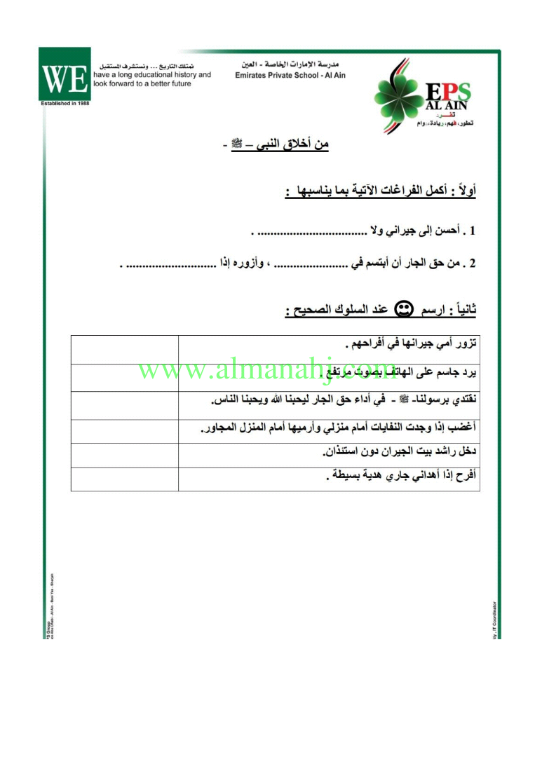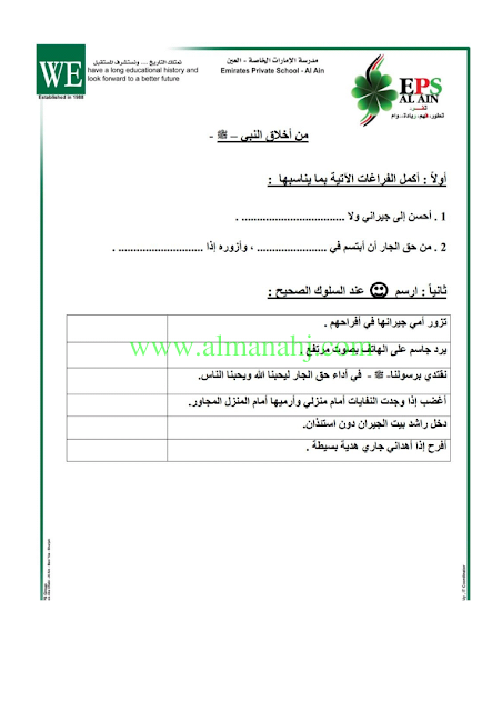 معلومات الملف: الصف الثاني, الفصل الثالث, تربية اسلامية, 2017-2018, من اخلاق النبي | |||