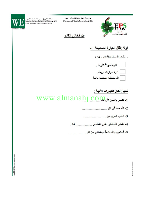 معلومات الملف: الصف الثاني, الفصل الثالث, تربية اسلامية, 2017-2018, الله الخالق القادر | |||