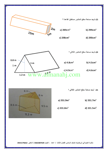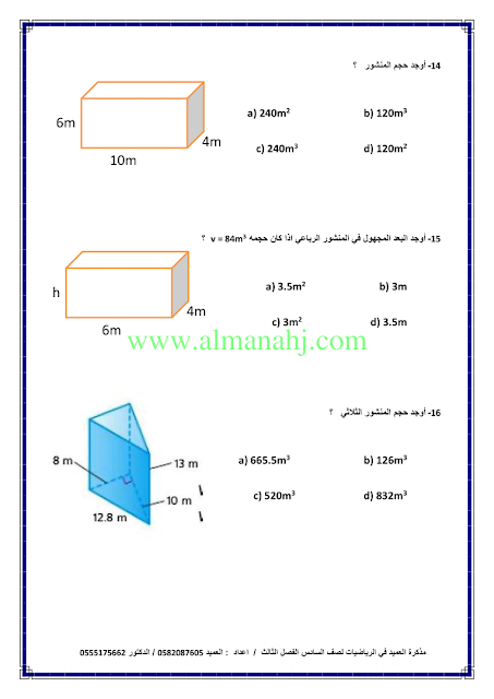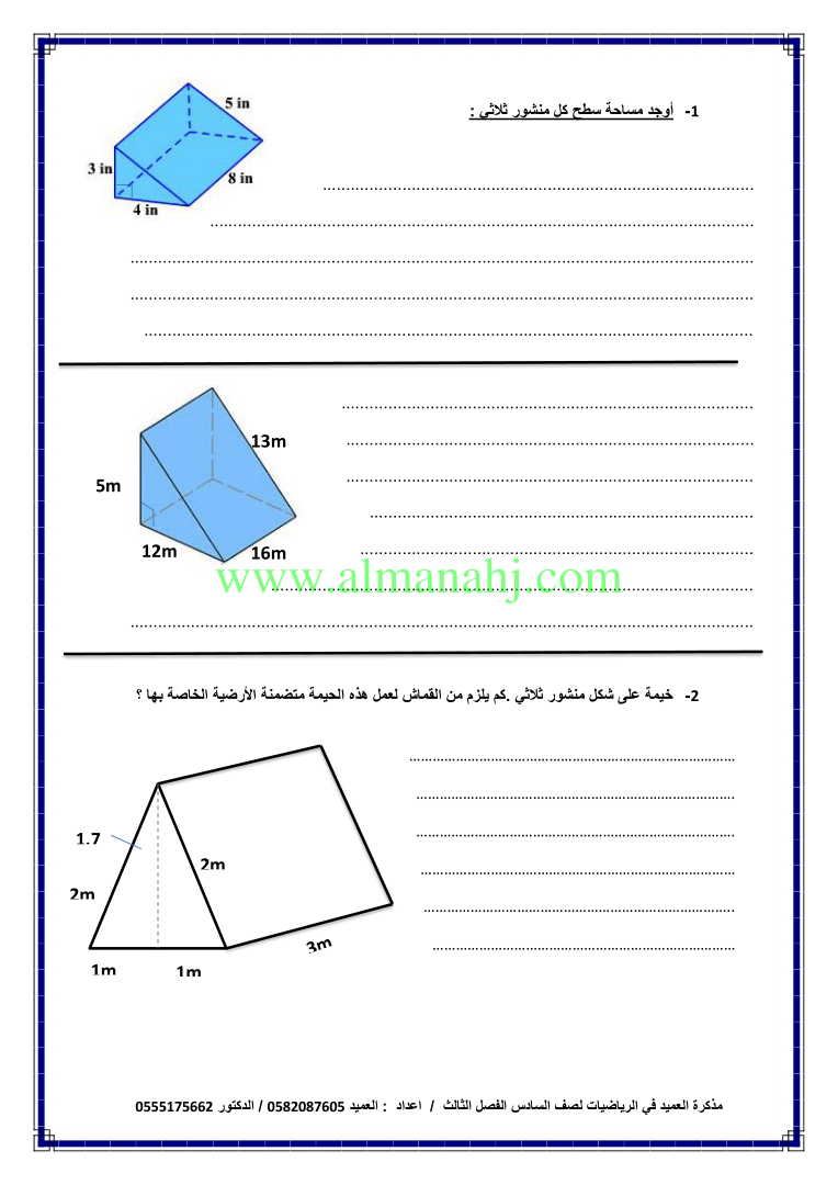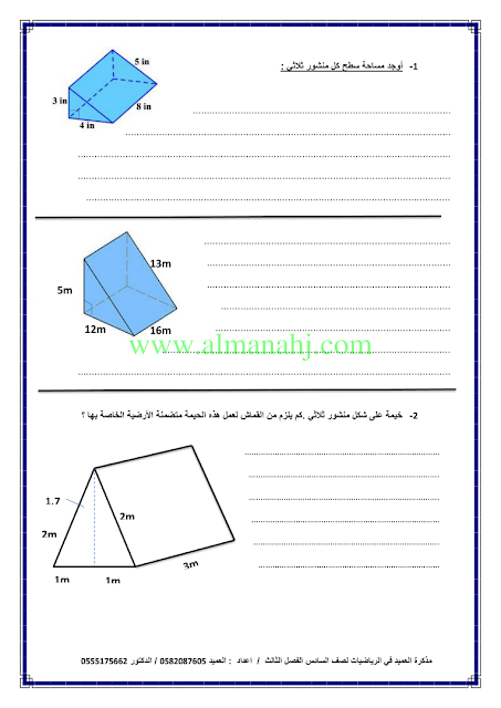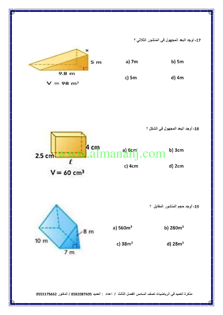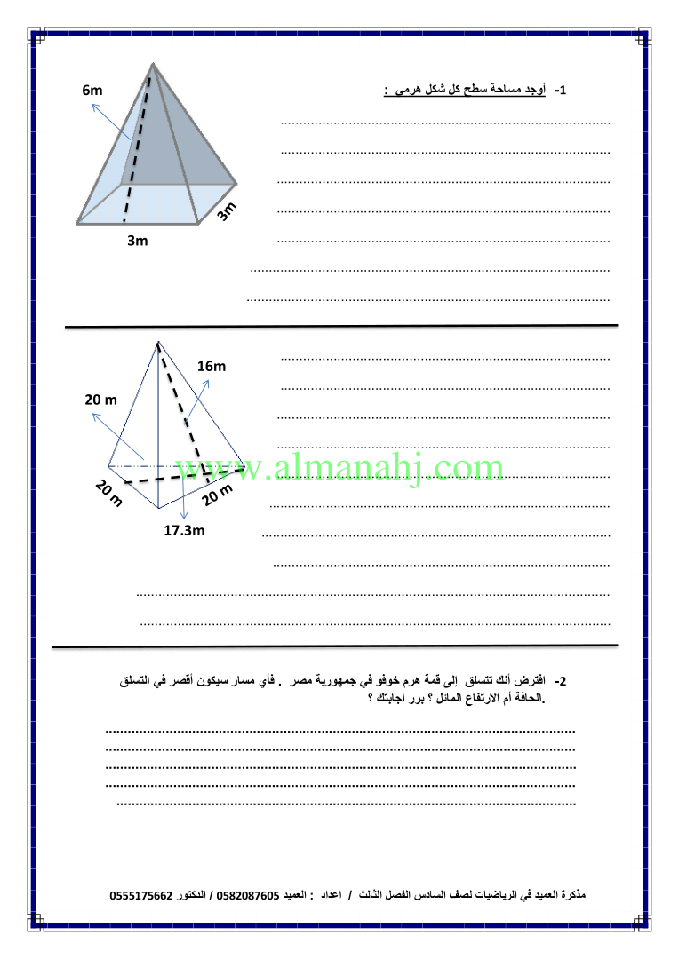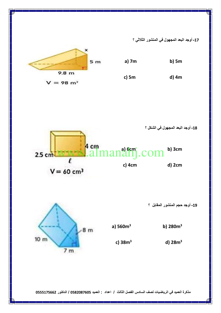 معلومات الملف: الصف السادس, الفصل الثالث, رياضيات, 2017-2018, اوراق عمل 1. | |||
