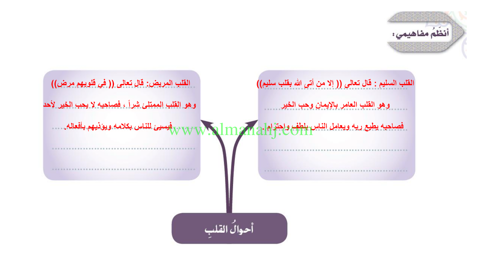معلومات الملف: الصف السابع, الفصل الثالث, تربية اسلامية, 2017-2018, القلب وصلاح الانسان | |||