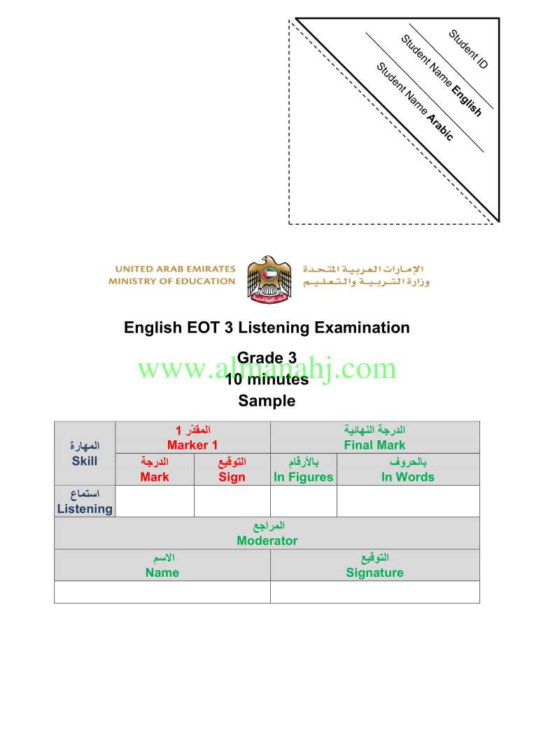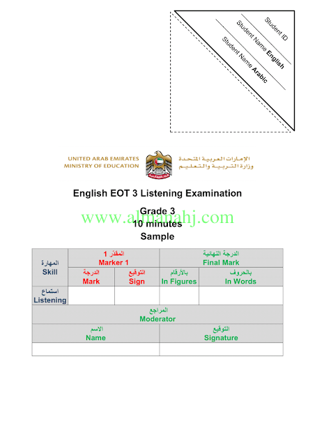 معلومات الملف: الصف الثالث, الفصل الثالث, لغة انكليزية, 2017-2018, النموذج التدريبي الرسمي لامتحان الاستماع | |||