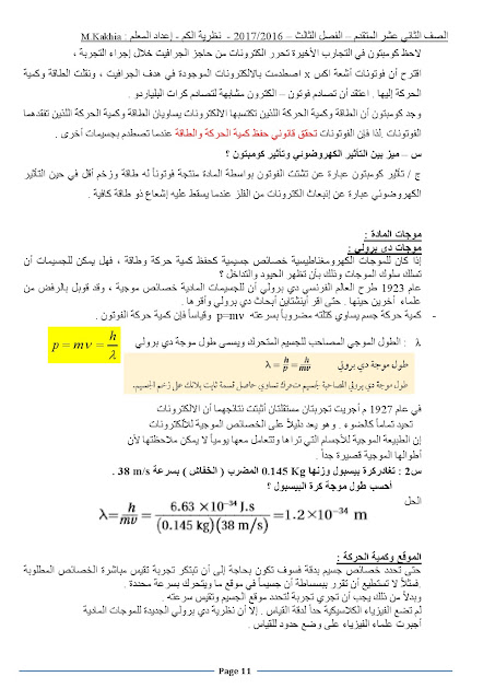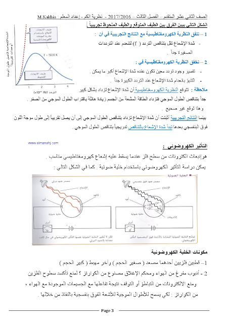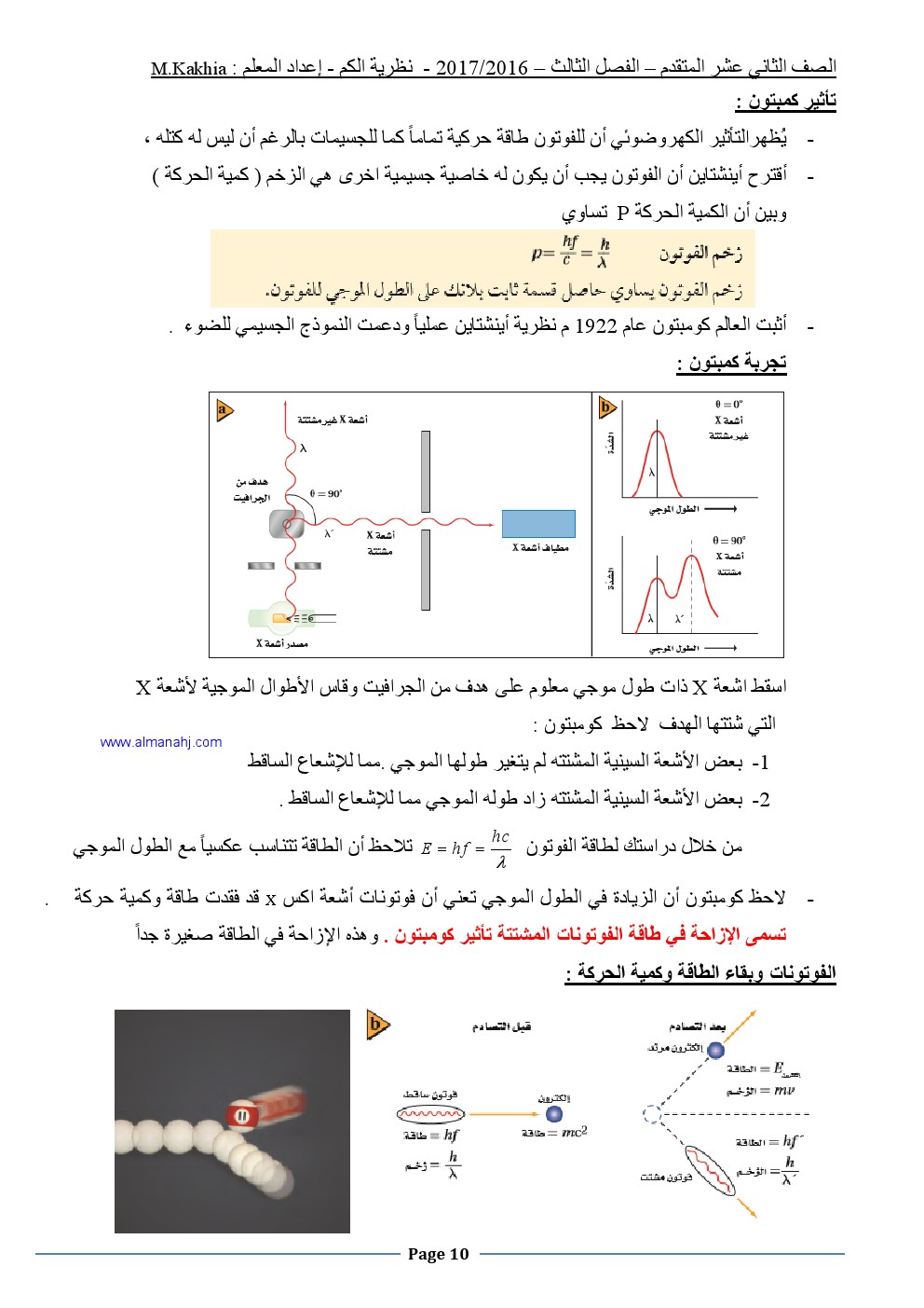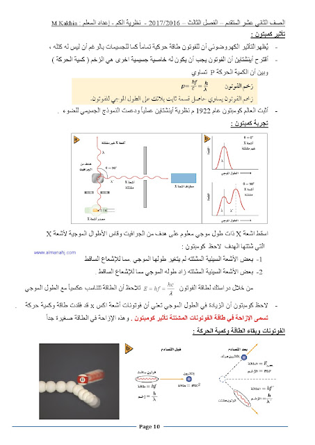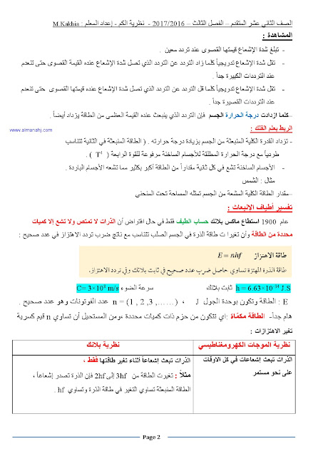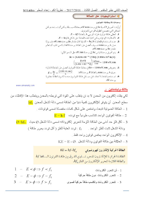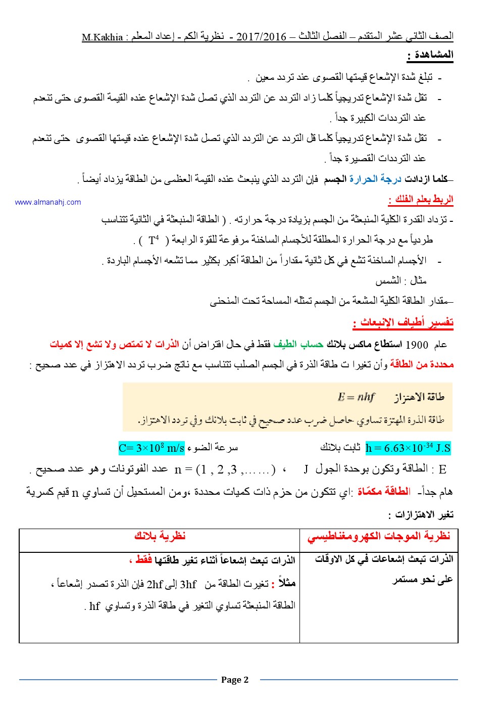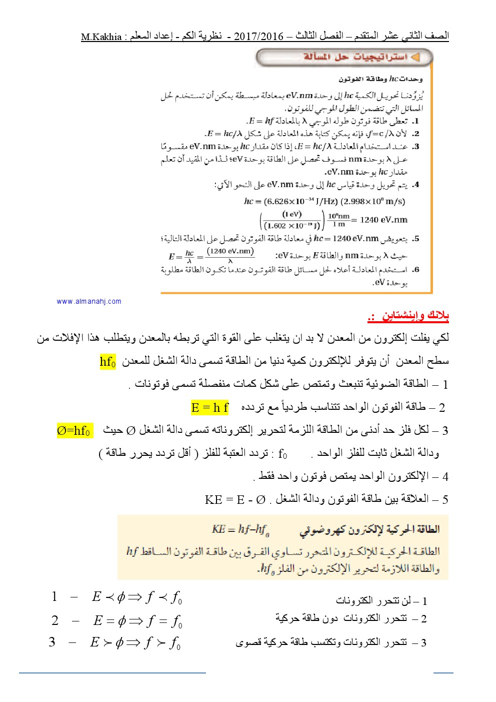 معلومات الملف: الصف الثاني عشر المتقدم, الفصل الثالث, فيزياء, 2017-2018, ملخص نظرية الكم | |||