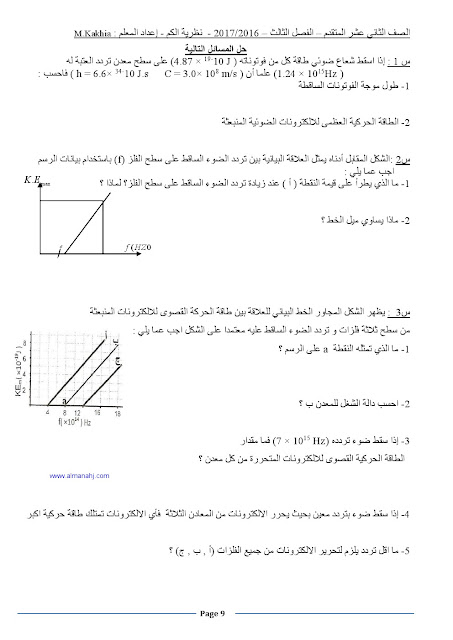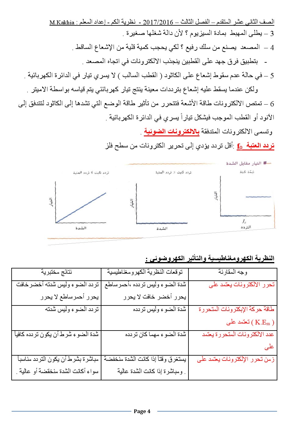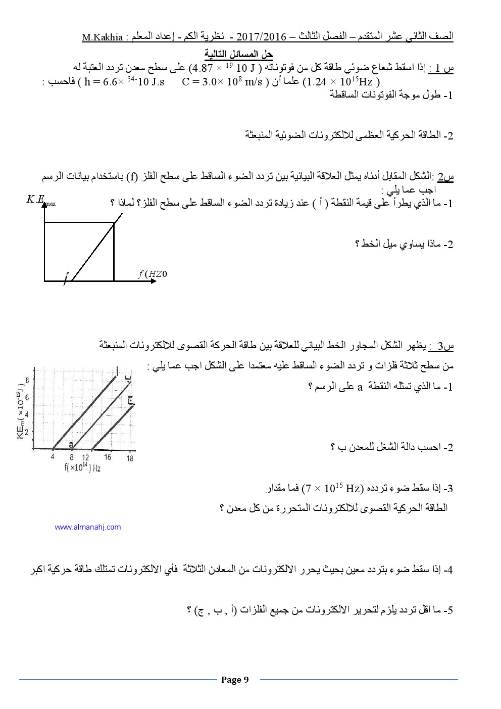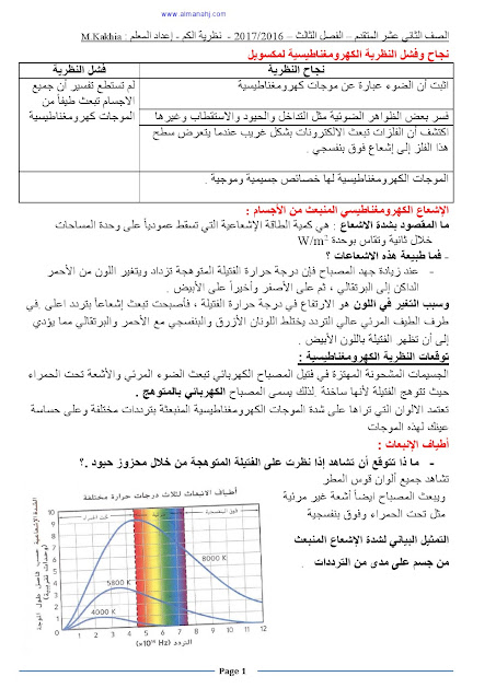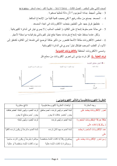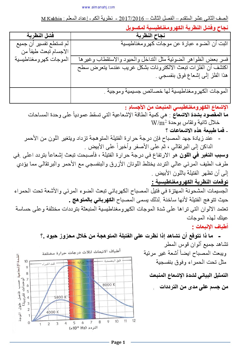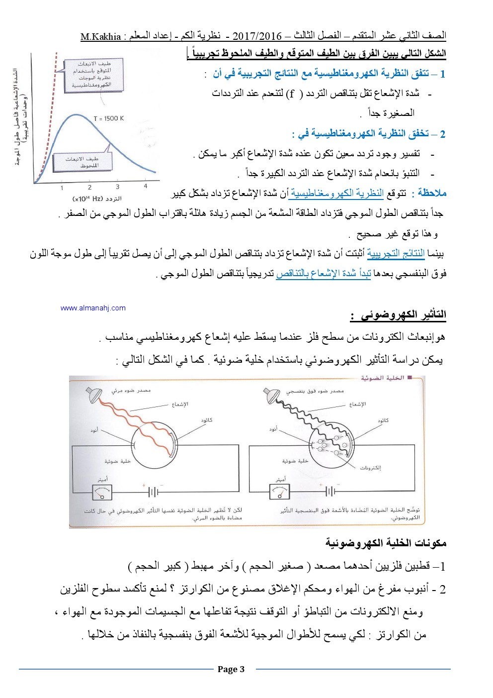 معلومات الملف: الصف الثاني عشر المتقدم, الفصل الثالث, فيزياء, 2017-2018, ملخص نظرية الكم | |||