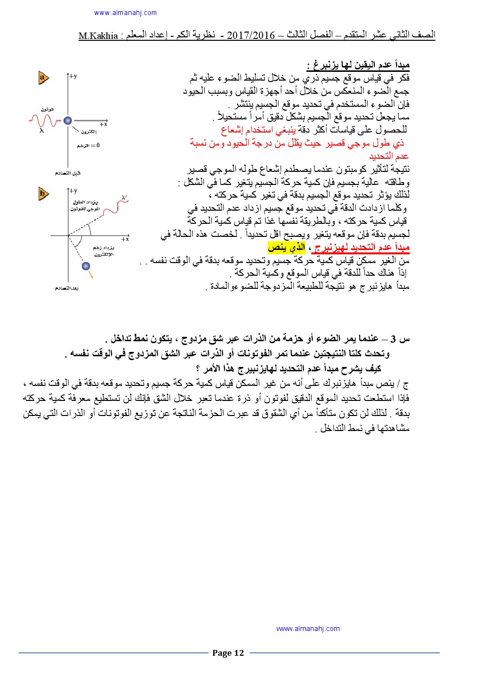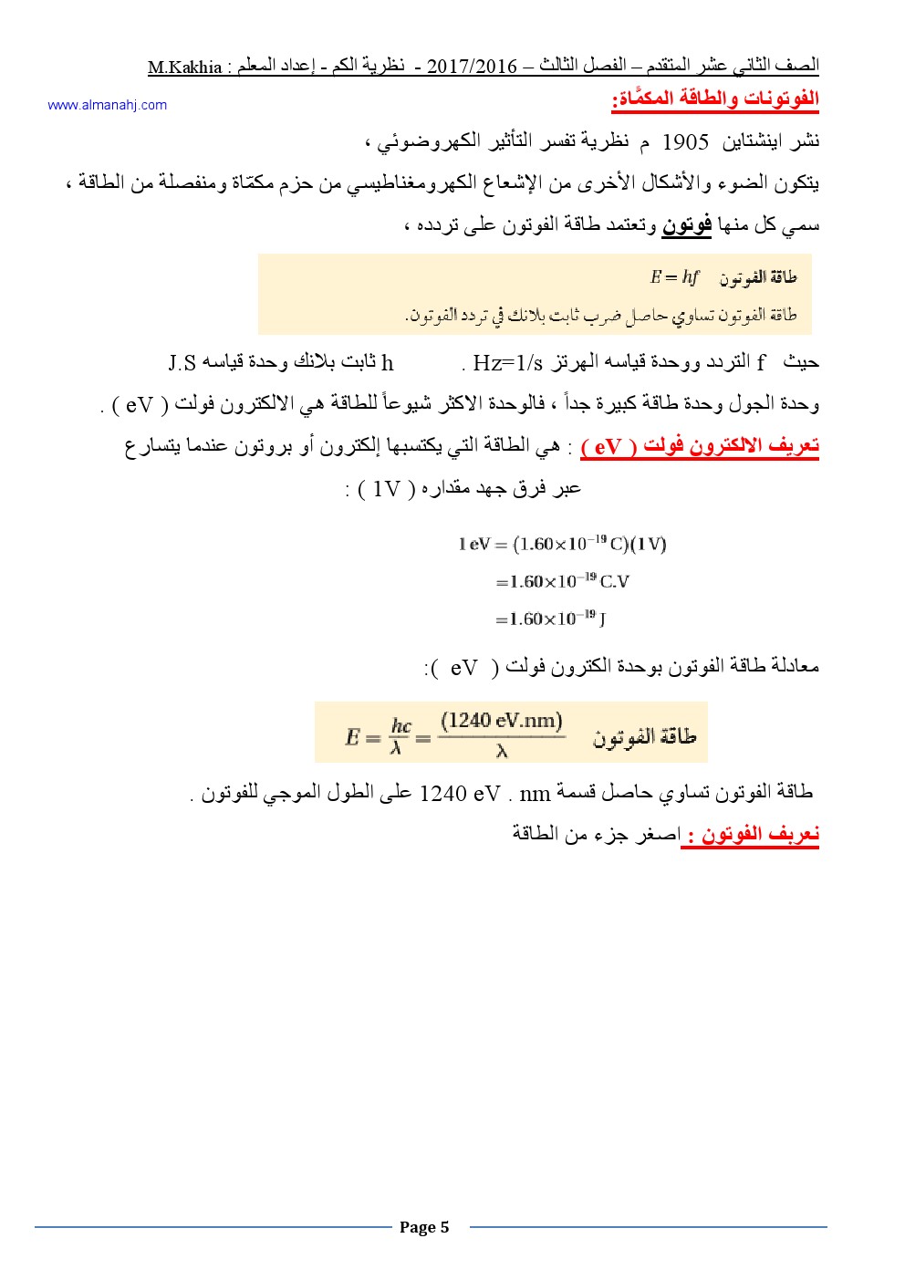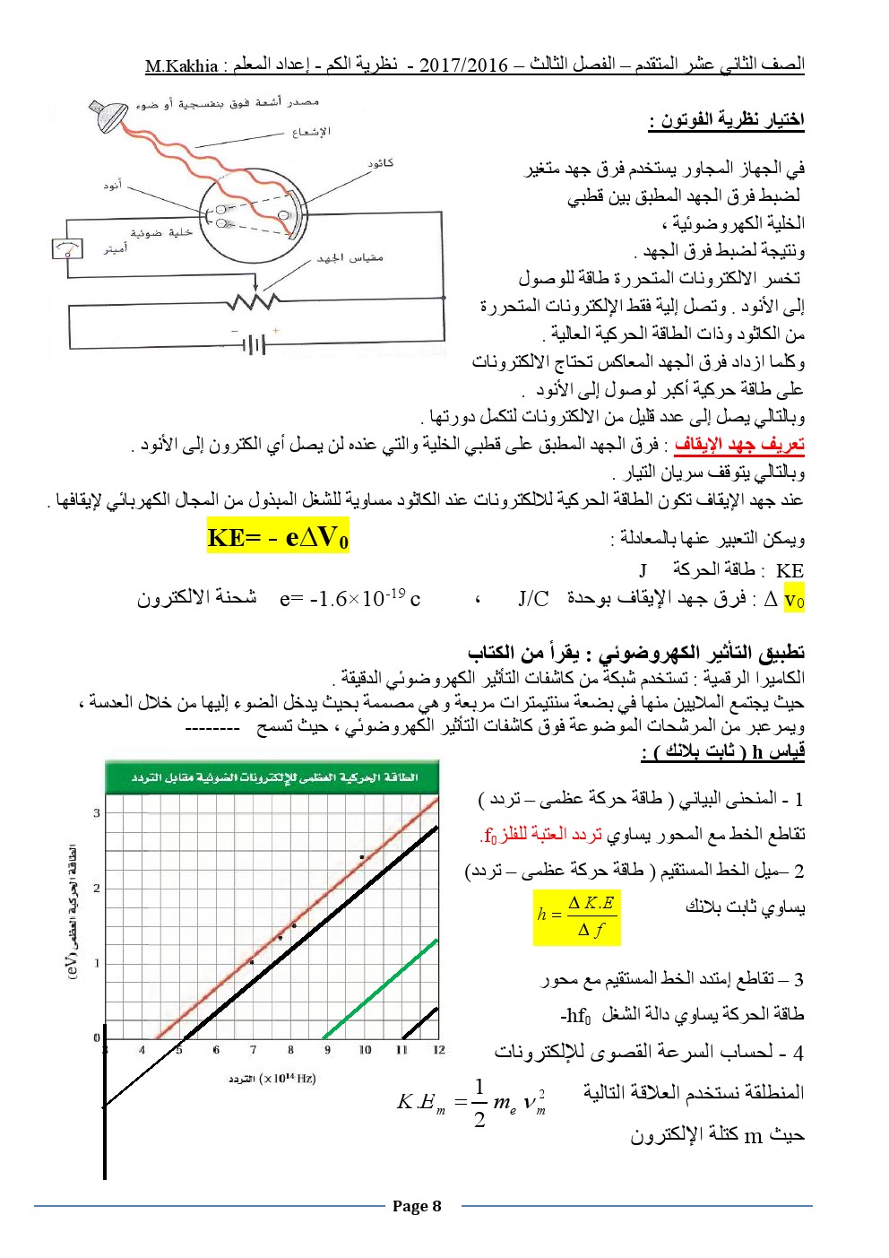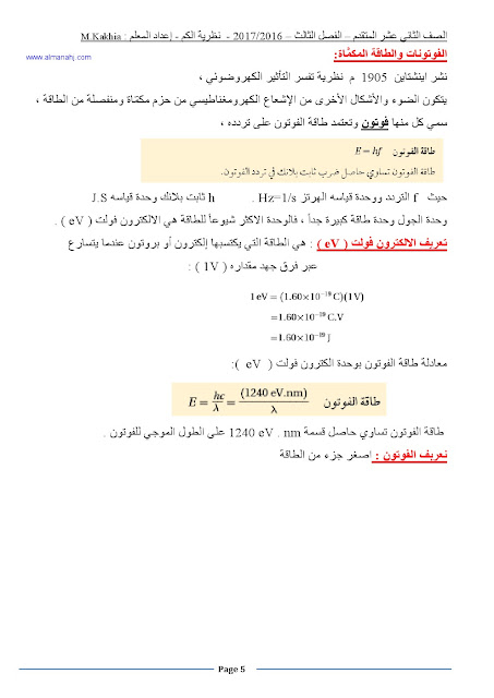 | معلومات الملف: الصف الثاني عشر المتقدم, الفصل الثالث, فيزياء, 2017-2018, ملخص نظرية الكم | |||