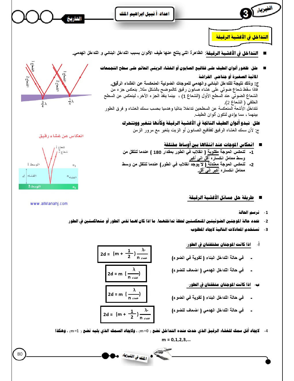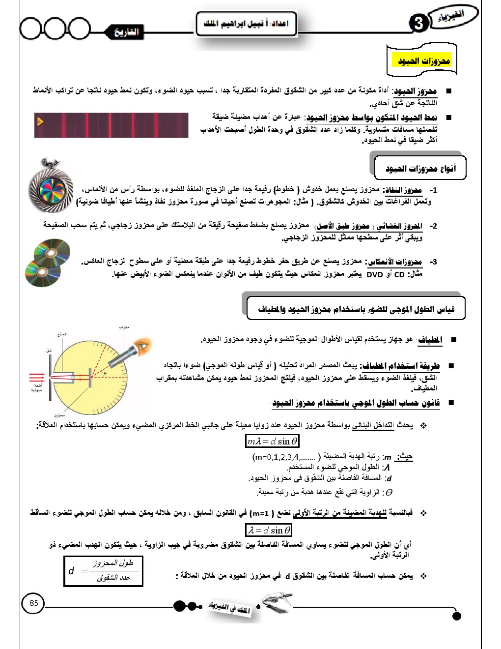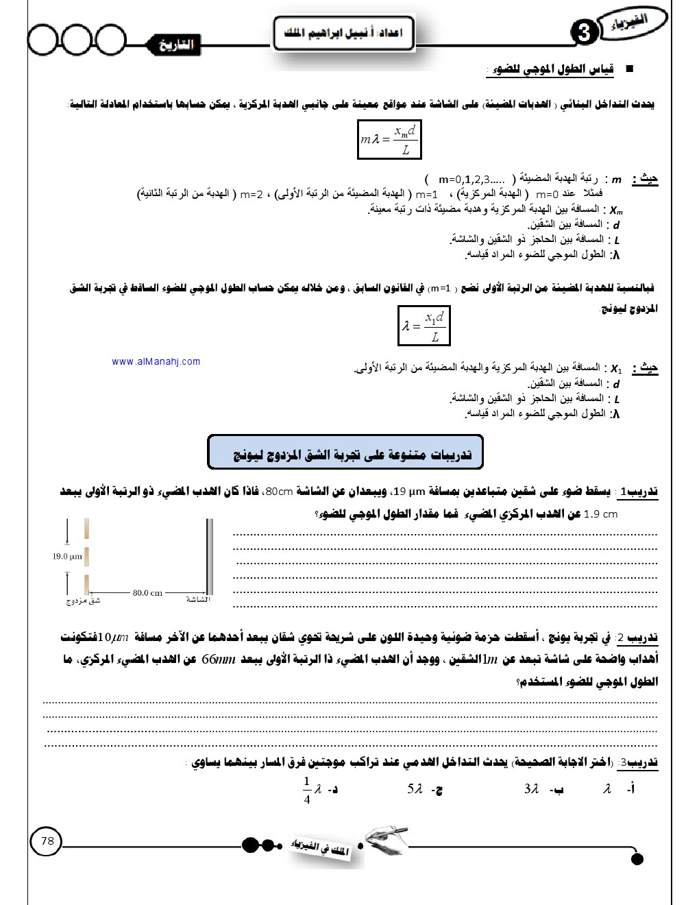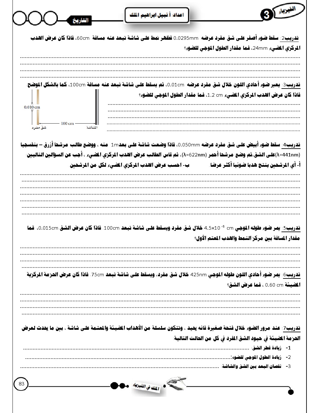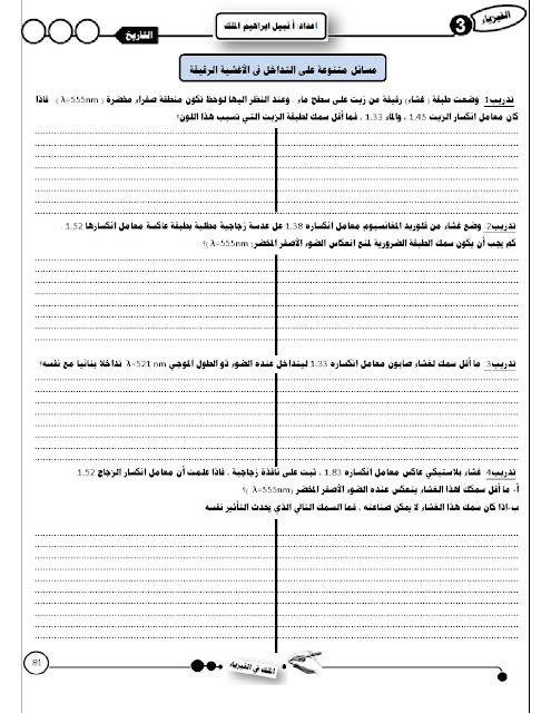 اضغط هنا لتحميل وعرض ( تدريبات متنوعة على التداخل والحيود ) |