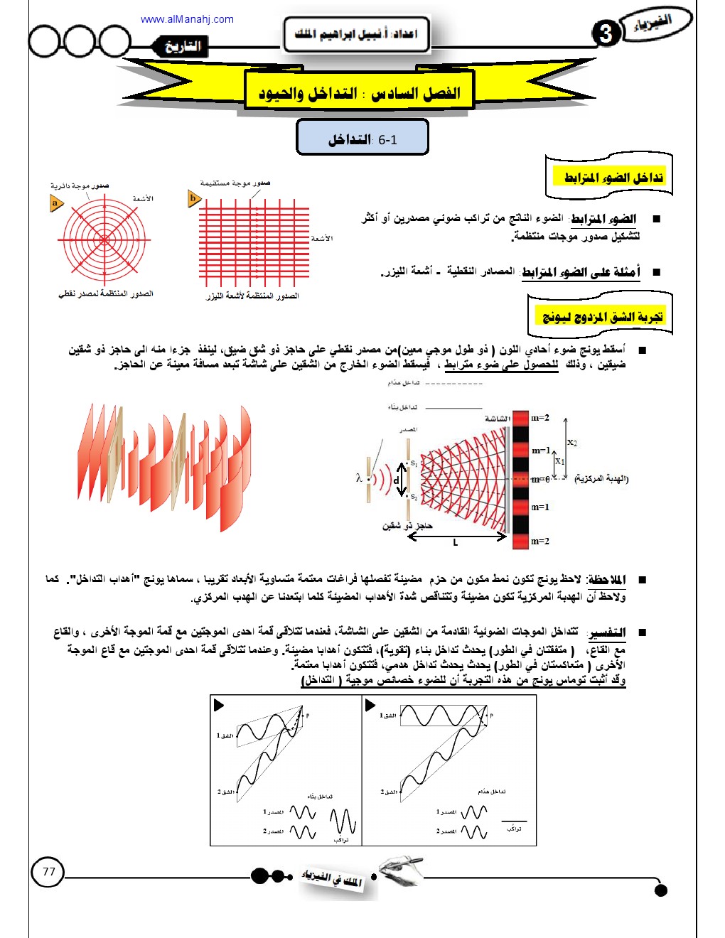 | رابط تحميل وعرض ( تدريبات متنوعة على التداخل والحيود ) | |||