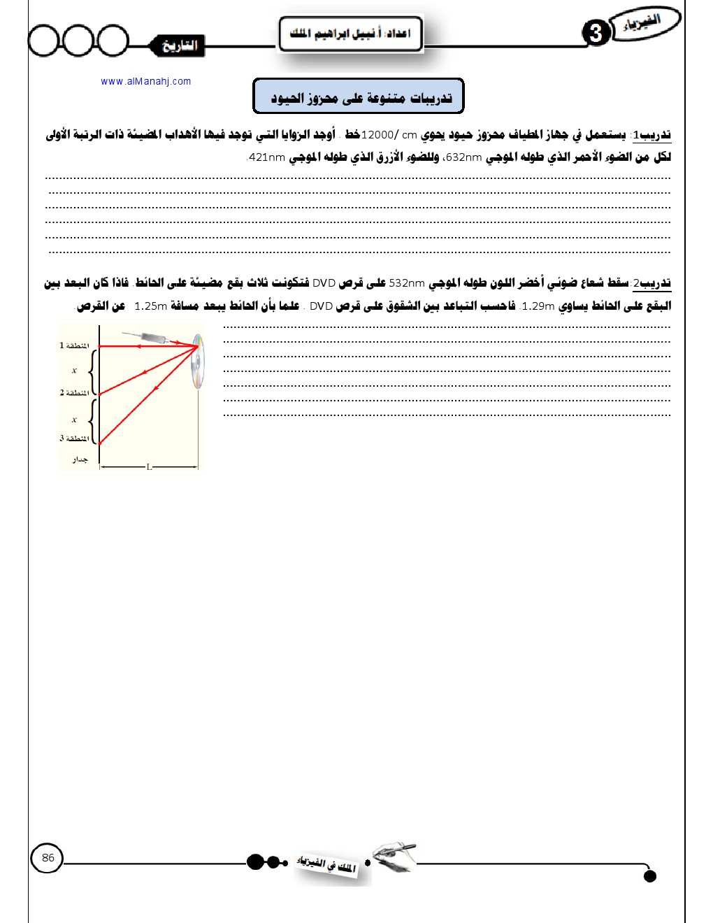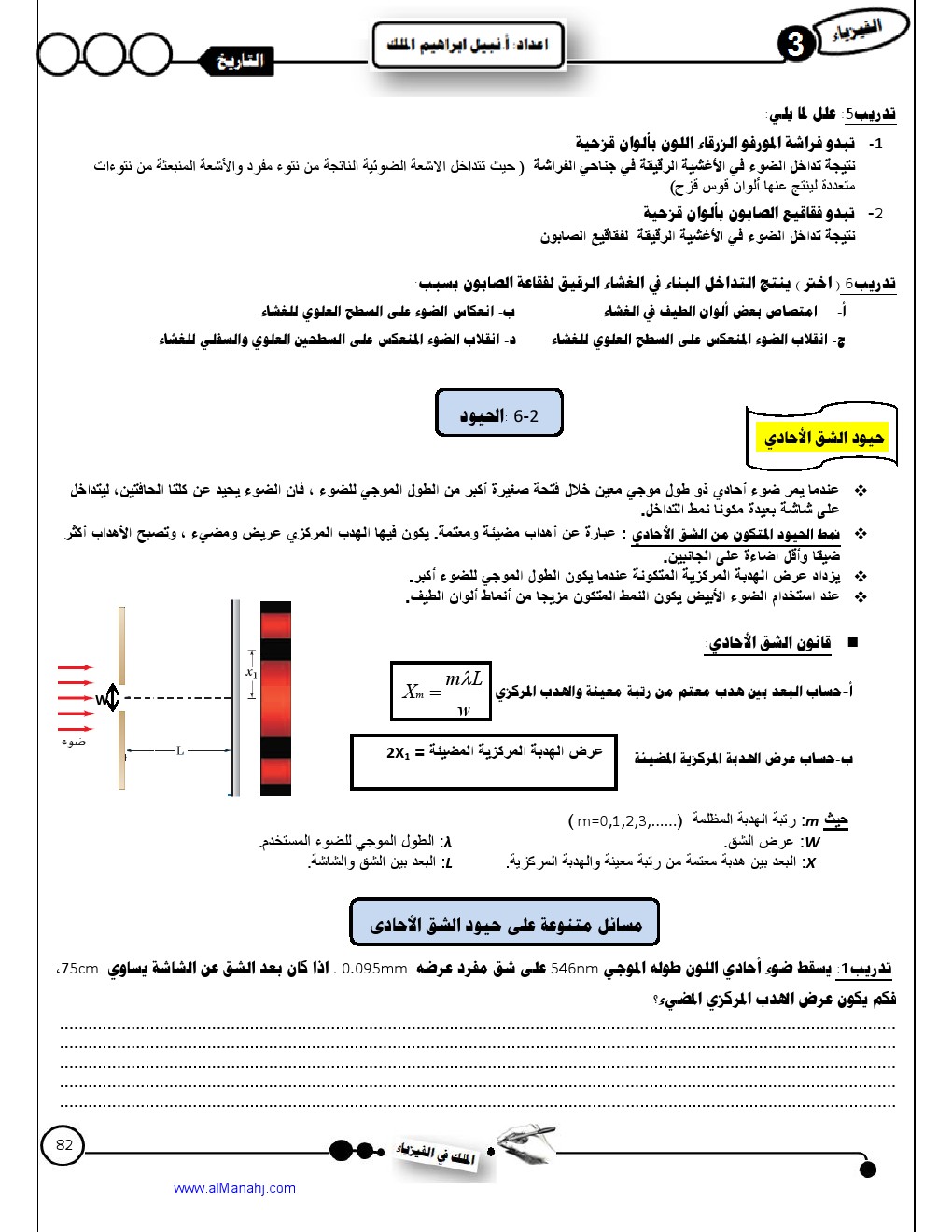 رابط تحميل وعرض ( تدريبات متنوعة على التداخل والحيود ) | |||