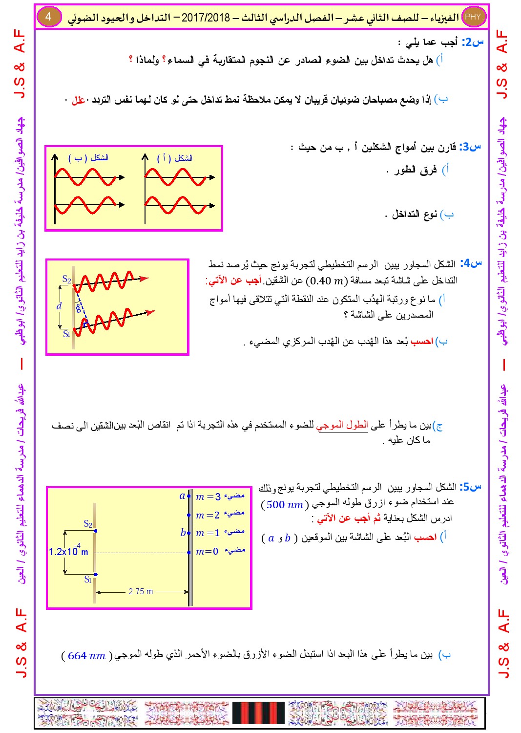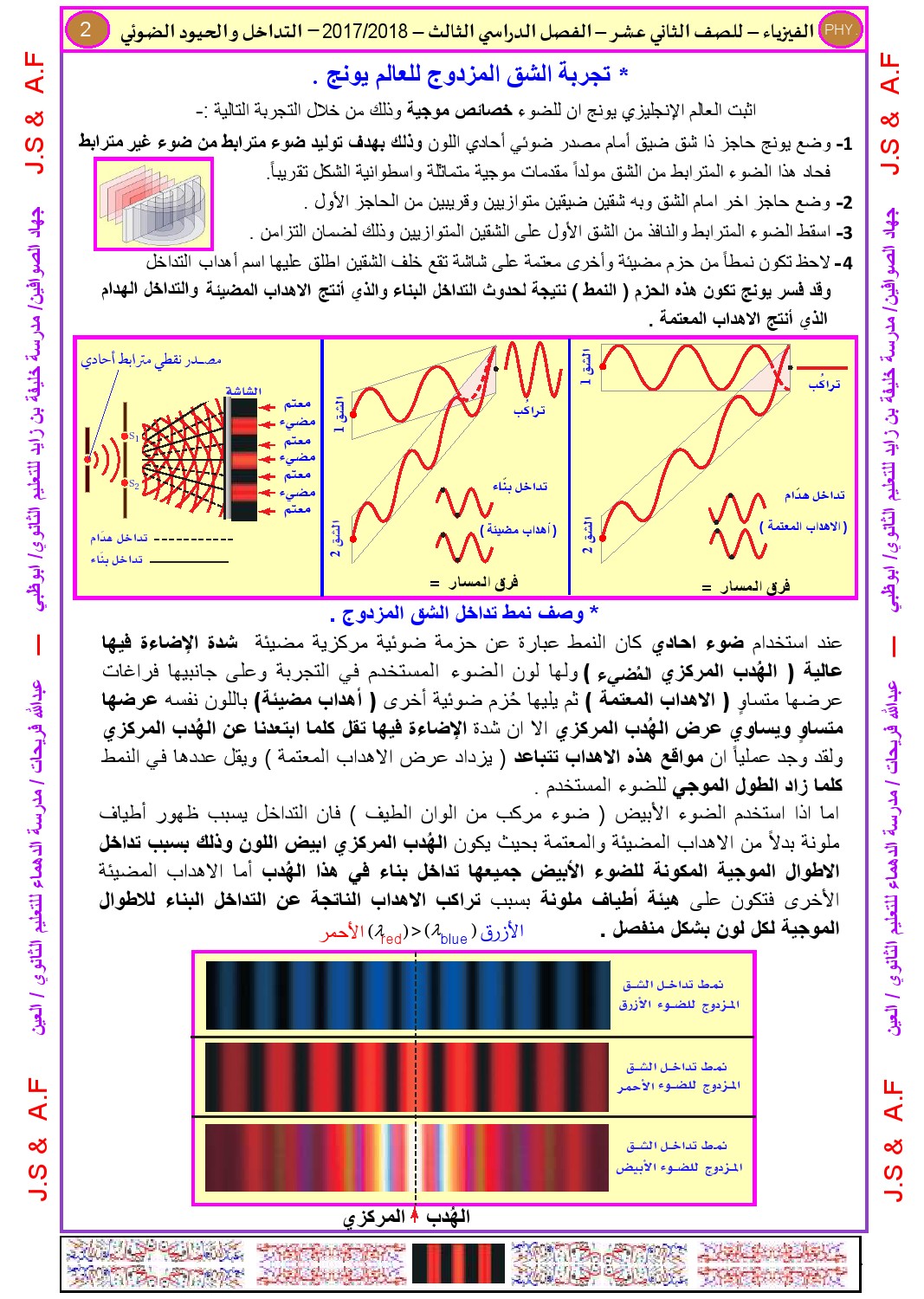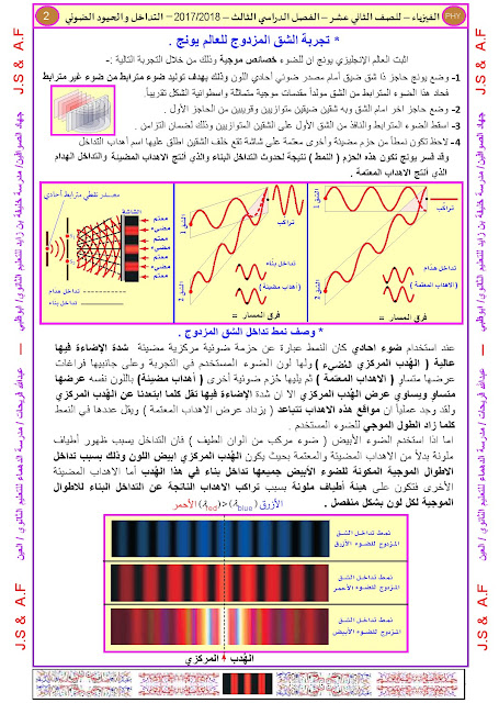 معلومات الملف: الصف الثاني عشر المتقدم, الفصل الثالث, فيزياء, 2017-2018, أوراق عمل التداخل والحيود | |||