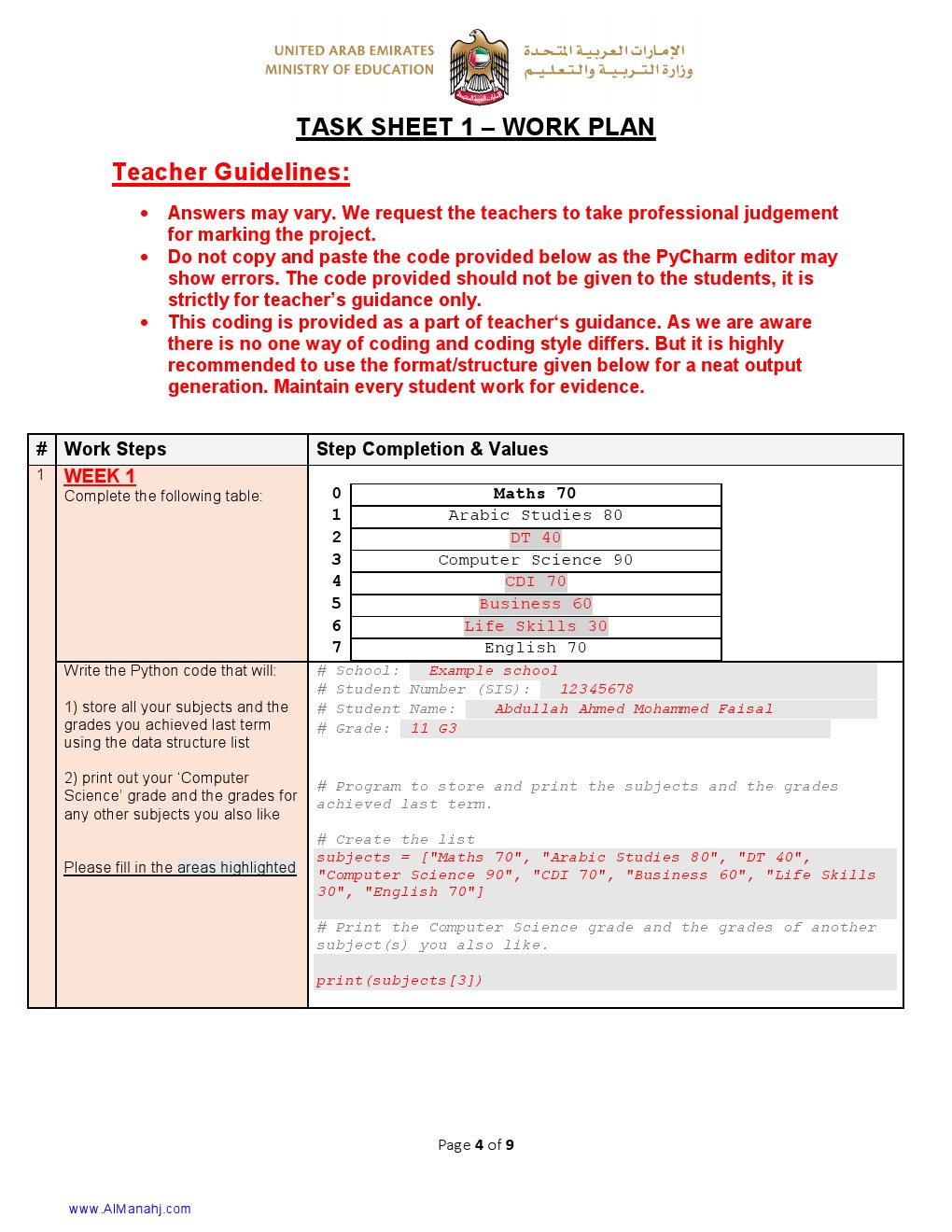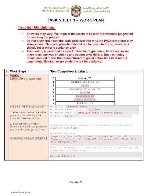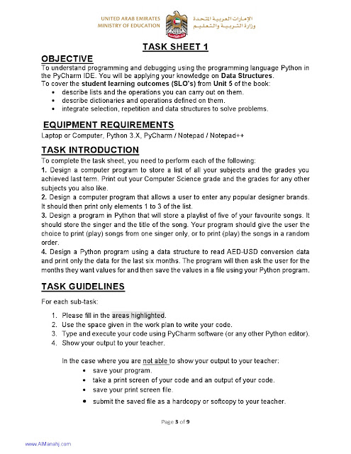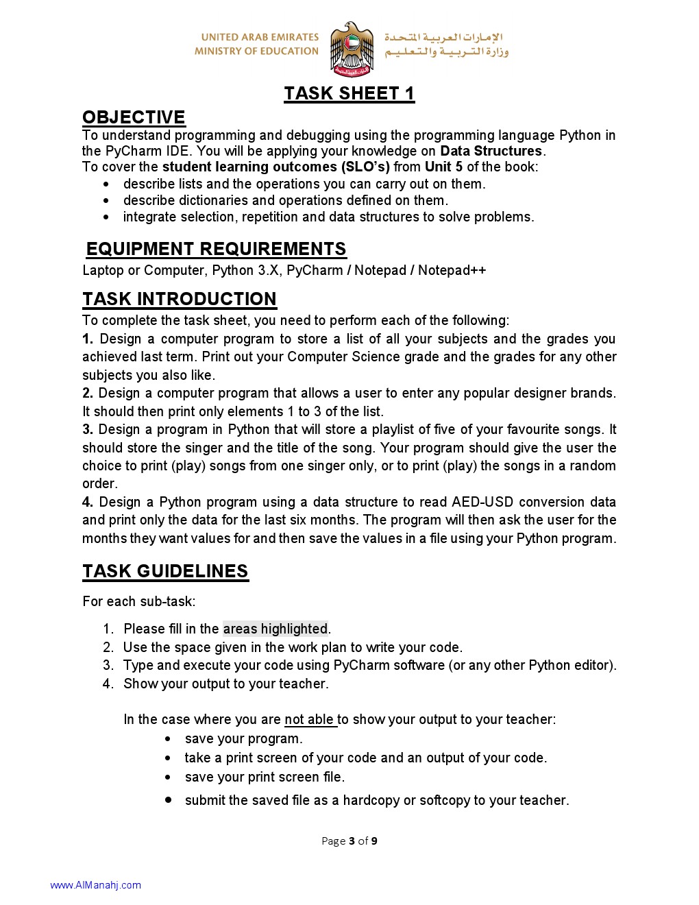 الصف الحادي عشر, الفصل الثالث, حاسوب, 2017-2018, حل التاسك شيت 1