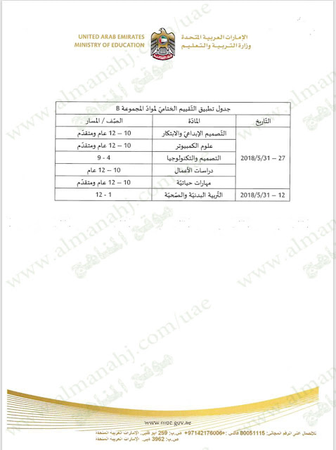 جدول تطبيق التقييم الختامي لمواد المجموعة ب لجميع الصفوف 2017-2018