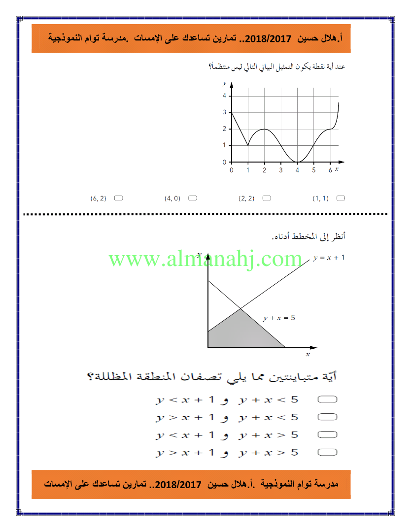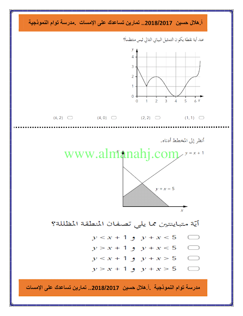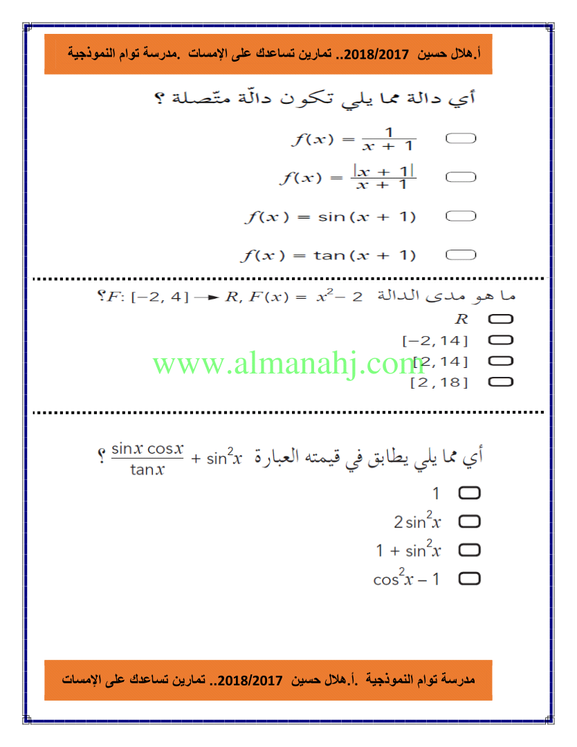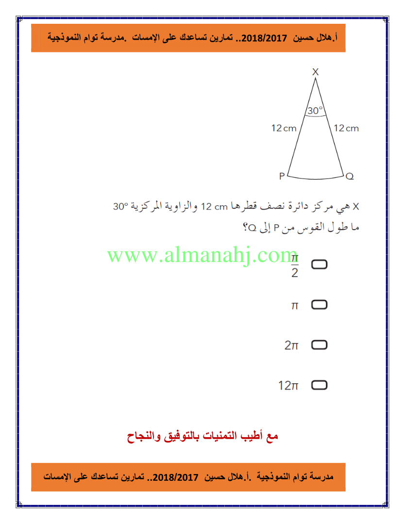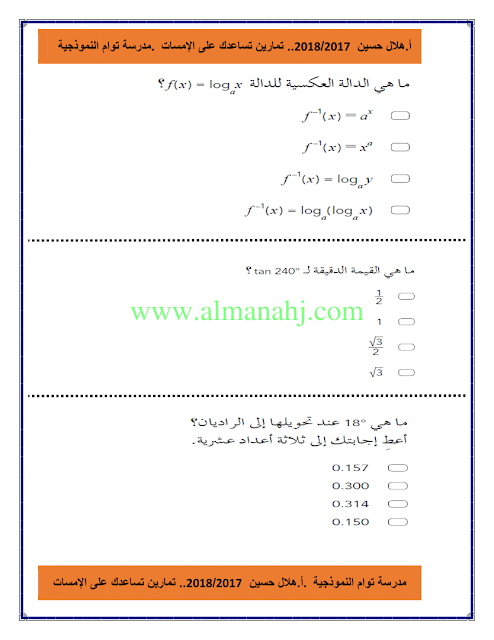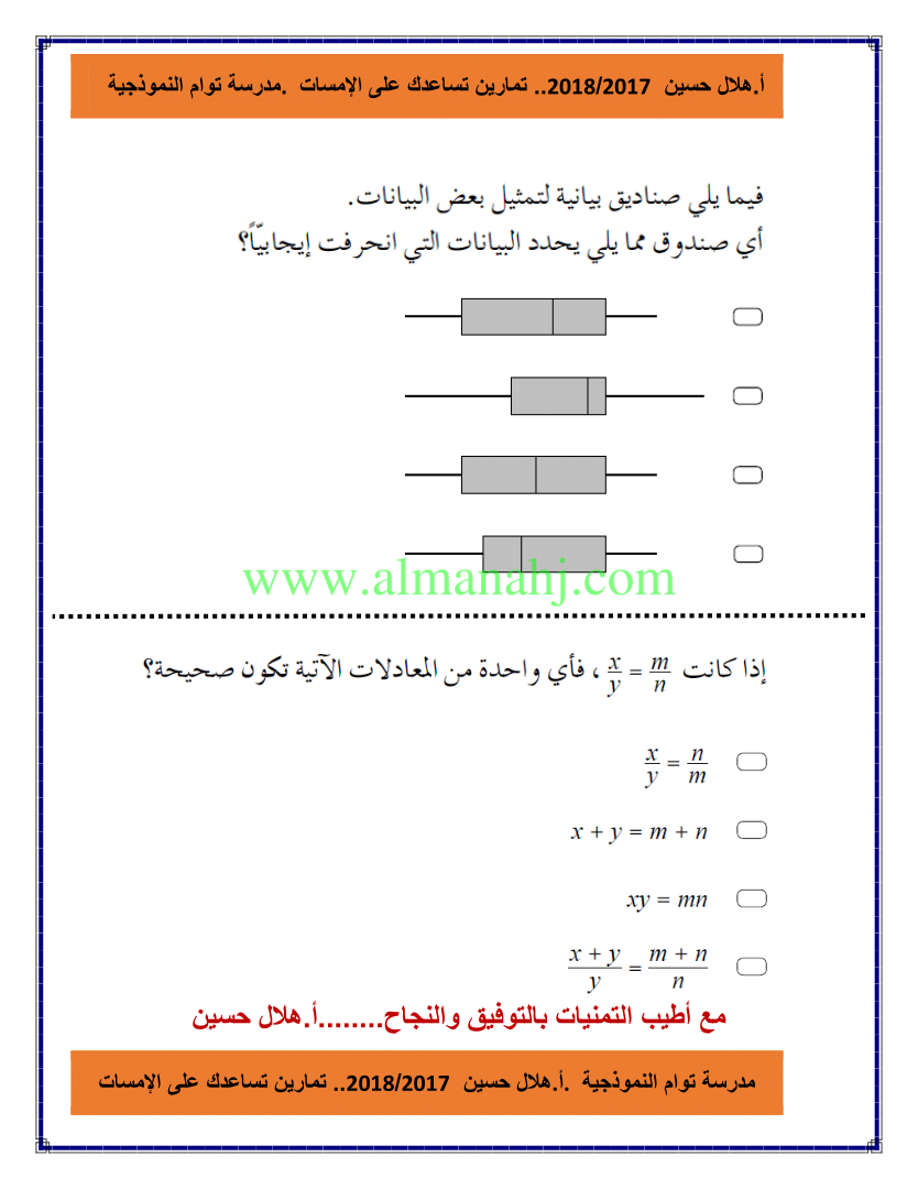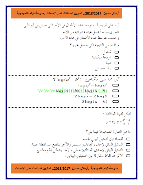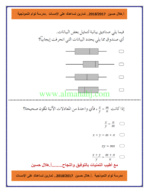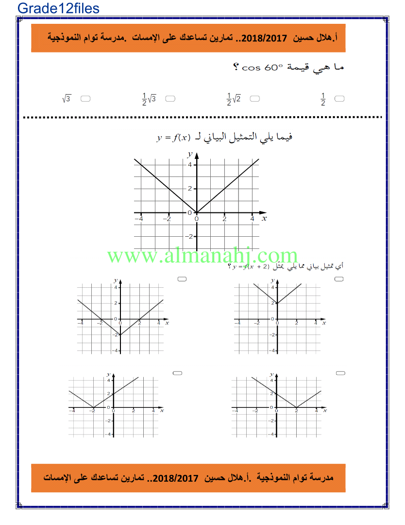 معلومات الملف: الصف الثاني عشر المتقدم, الفصل الثالث, رياضيات, 2017-2018, تدريبات على الامسات | |||