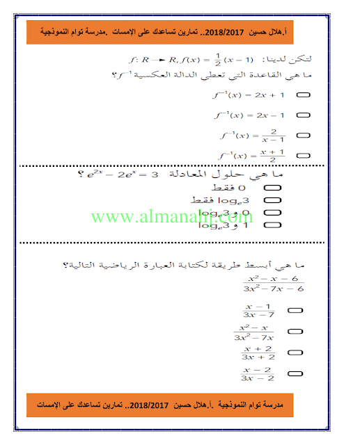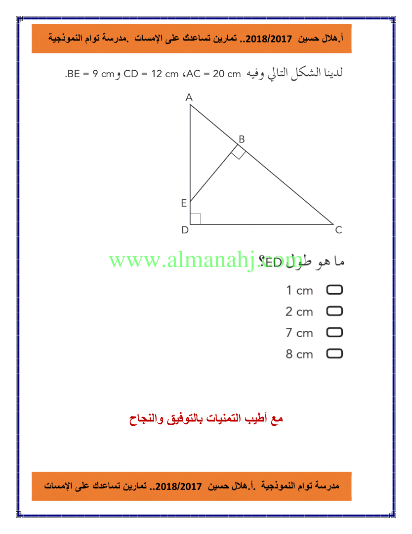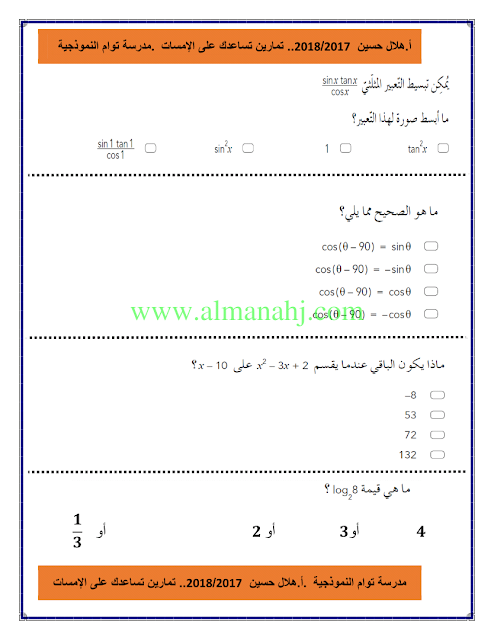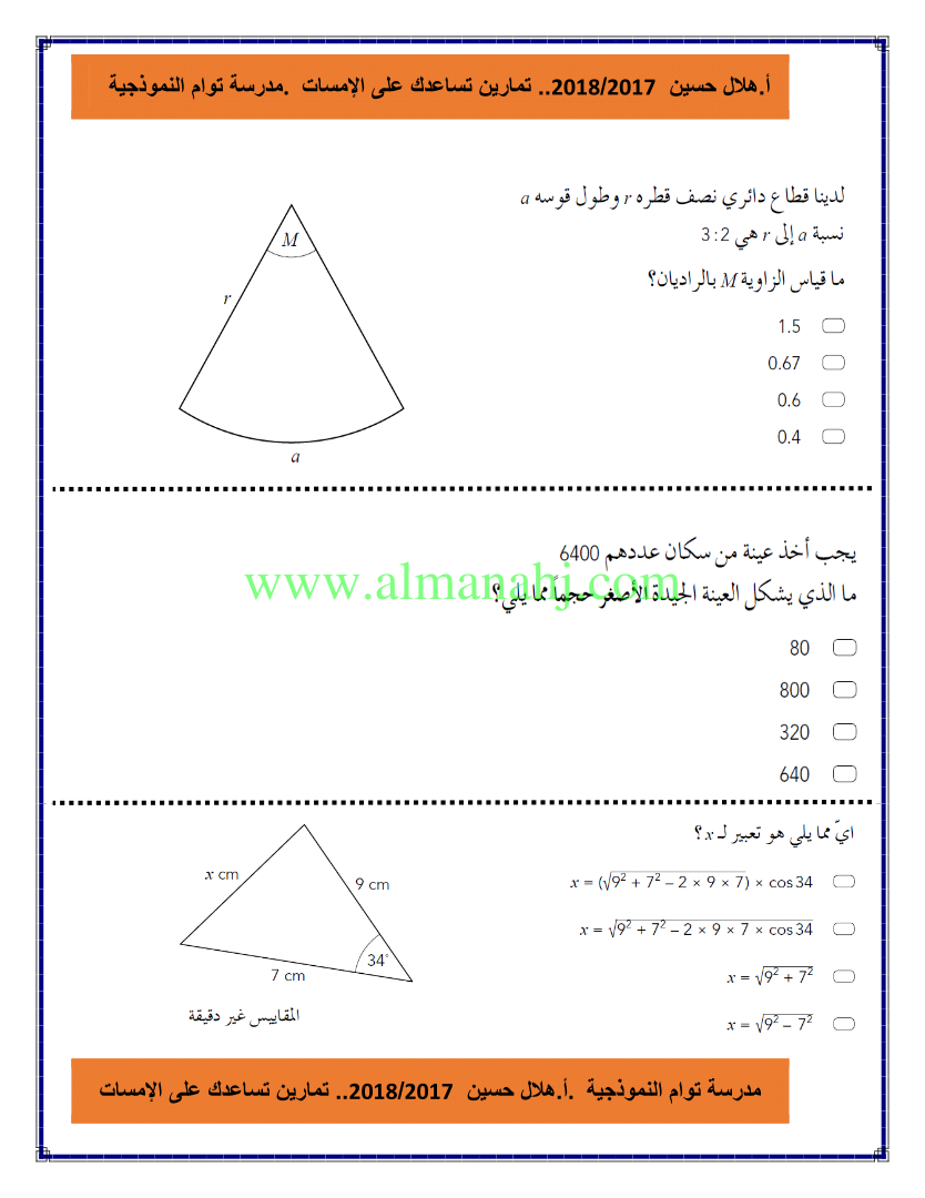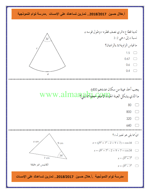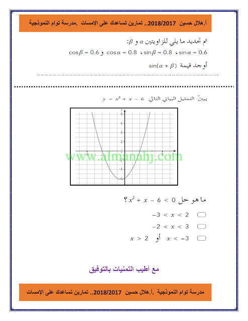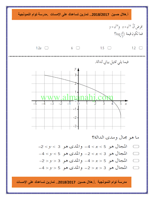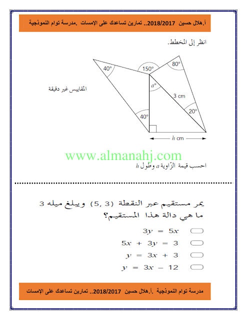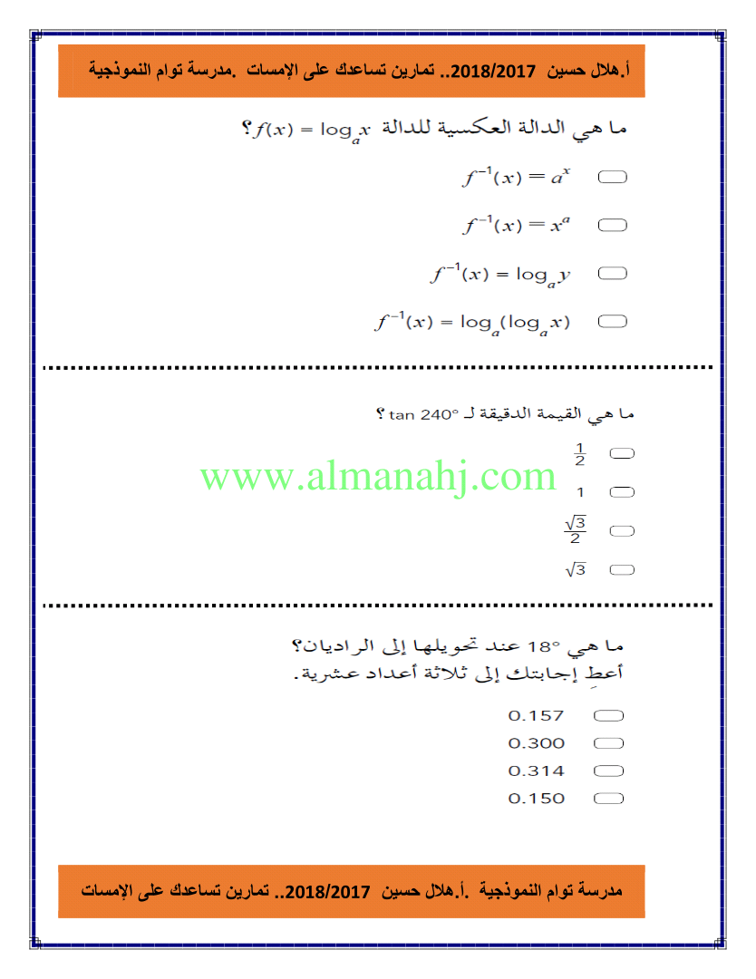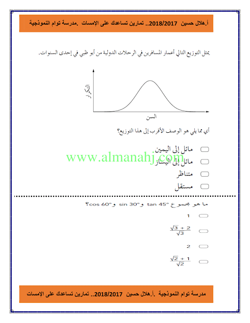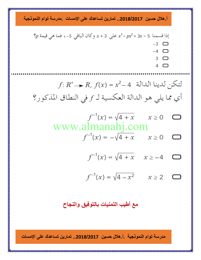 معلومات الملف: الصف الثاني عشر المتقدم, الفصل الثالث, رياضيات, 2017-2018, تدريبات على الامسات | |||