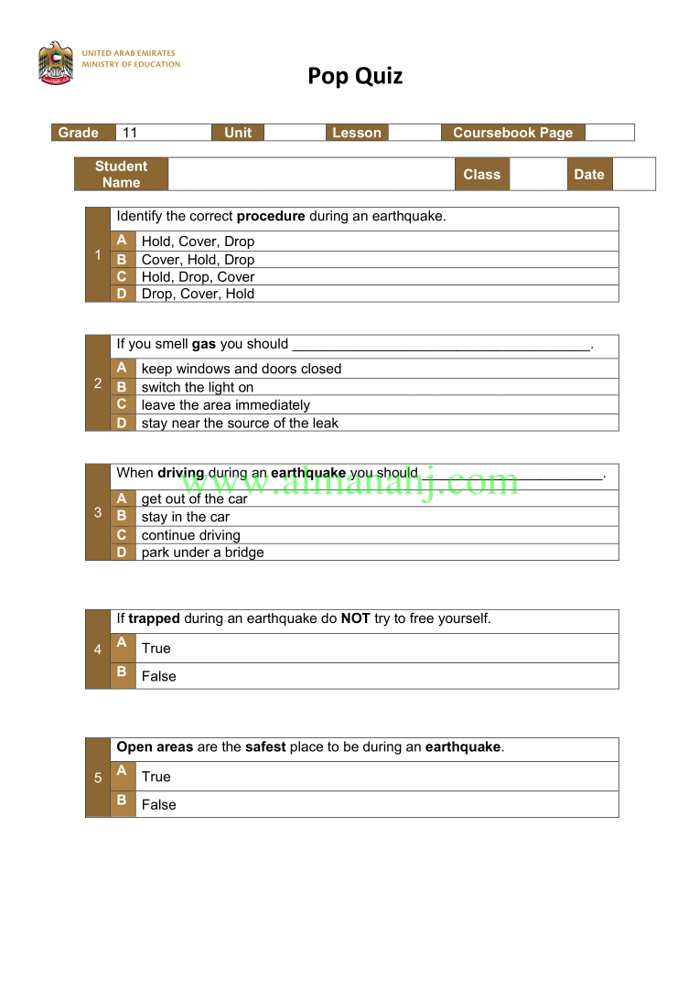 تفاصيل الخبر: الصف الحادي عشر, الفصل الثالث, مهارات حياتية, 2017-2018, بوب كويز1 | |||