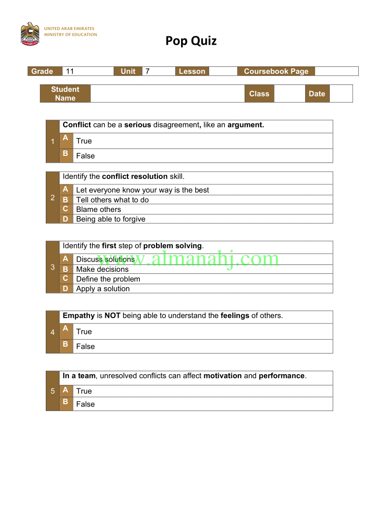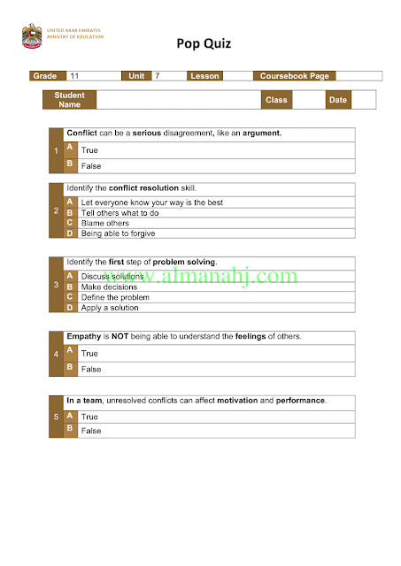 تفاصيل الخبر: الصف الحادي عشر, الفصل الثالث, مهارات حياتية, 2017-2018, بوب كويز2 | |||