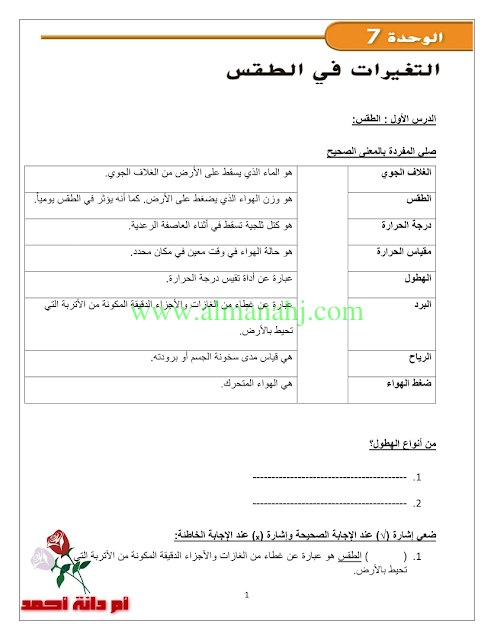 | رابط تحميل وعرض ( الوحدة السابعة التغيرات في الطقس ) | |||
