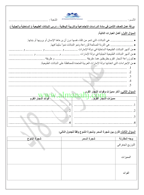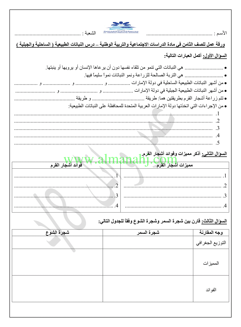 معلومات الملف: الصف الثامن, الفصل الثالث, اجتماعيات, 2017-2018, ورقة عمل درس النباتات الطبيعية ( الساحلية والجبلية ) | |||