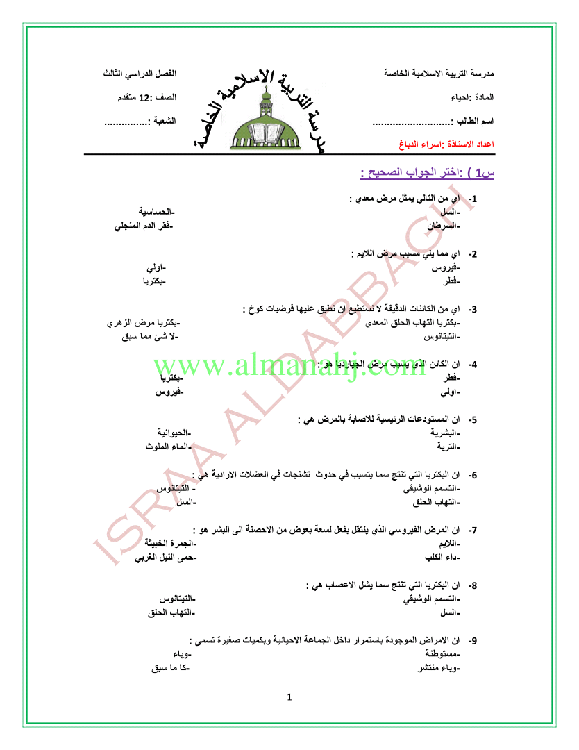 | السابق: مراجعة ثانية لجهاز المناعة عدد الاوراق6 | الملف الحالي: 4676 | التالي: نموذج اختبار تجريبي مطابق 2025 - 2026 | |