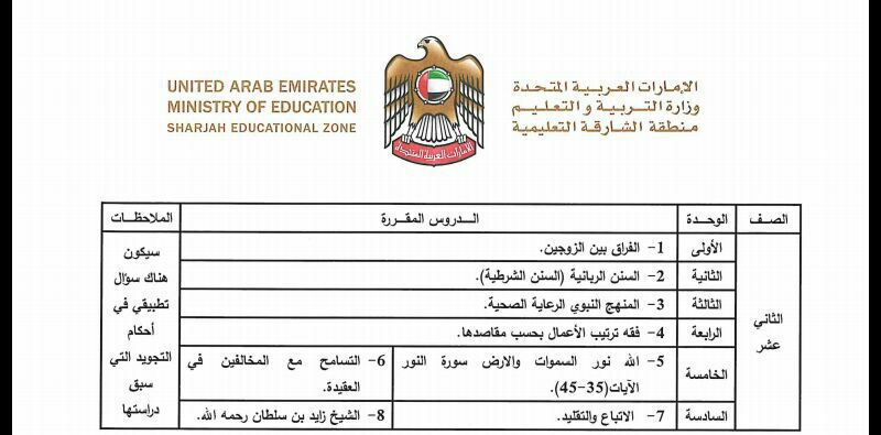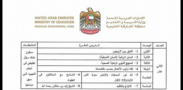 الملاحظات المثبتة في المناهج الإماراتية | |