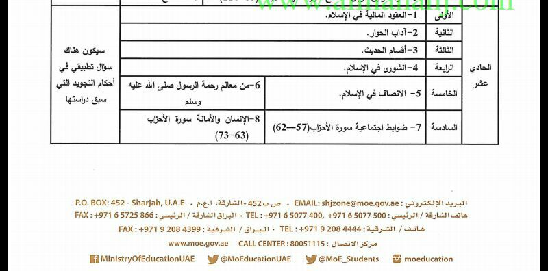 معلومات الملف: الصف الحادي عشر, الفصل الثالث, تربية اسلامية, 2017-2018, مقررات امتحان نهاية العام 2017-2018 | ||