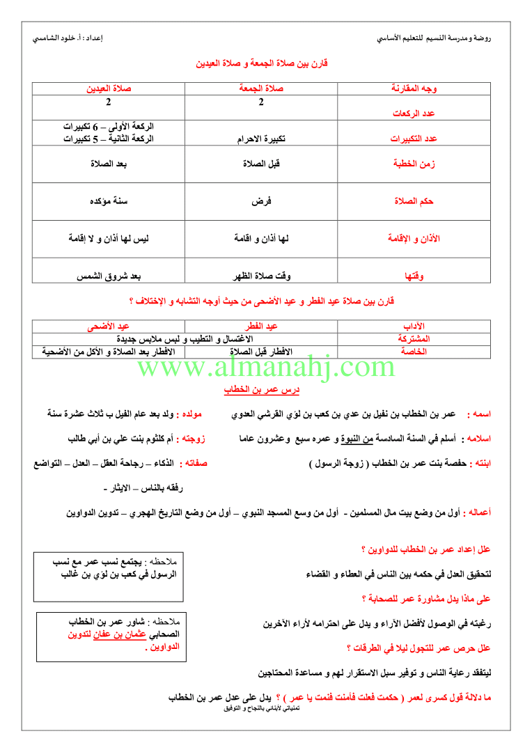 معلومات الملف: الصف الخامس, الفصل الثالث, تربية اسلامية, 2017-2018, تلخيص اسلامية الجزء الثاني والثالث | |||