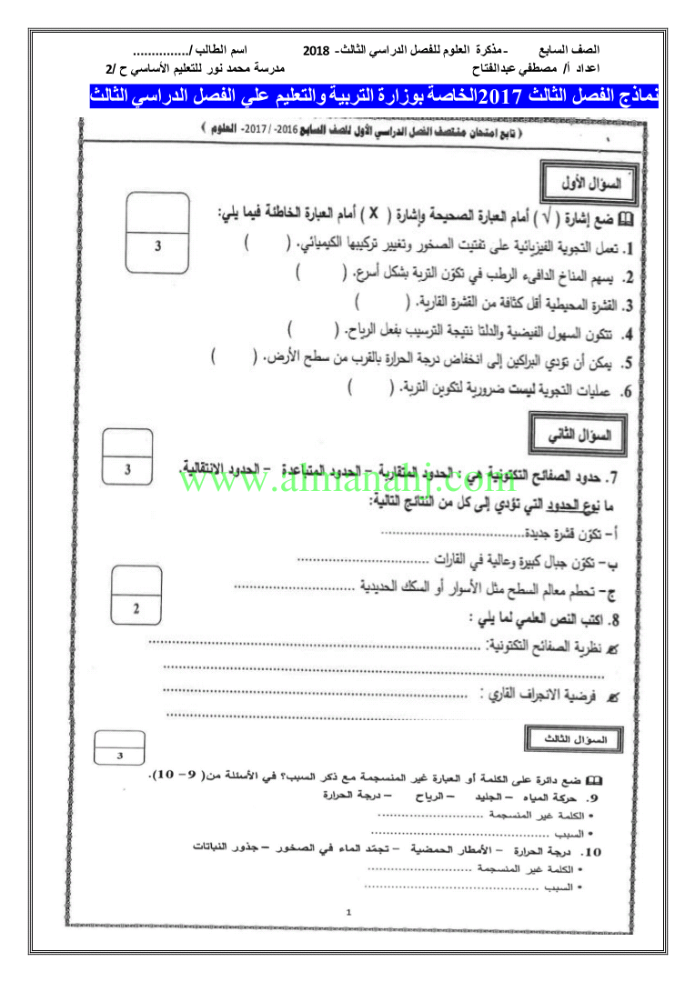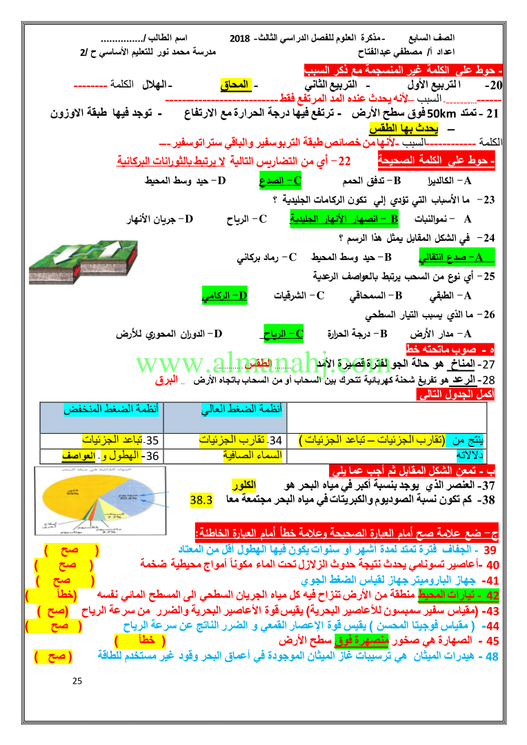معلومات الملف: الصف الخامس, الفصل الثالث, علوم, 2017-2018, مذكرة علوم شاملة | |||