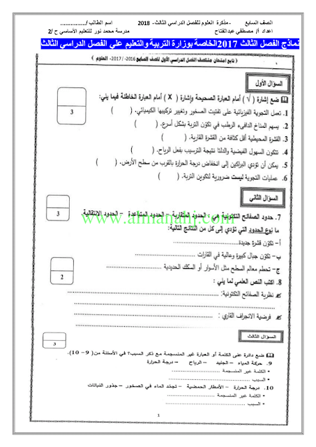 أحدث ملفات الصف الخامس, التعلم عن بعد, الفصل الثالث |