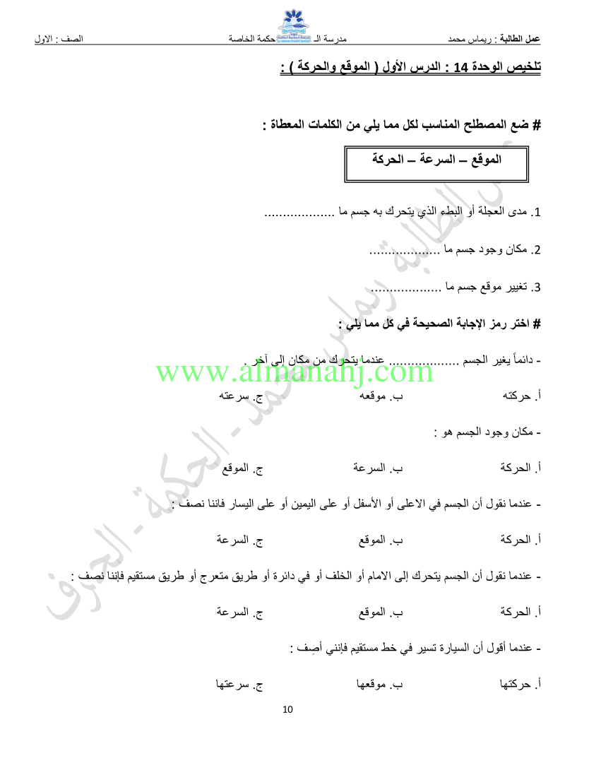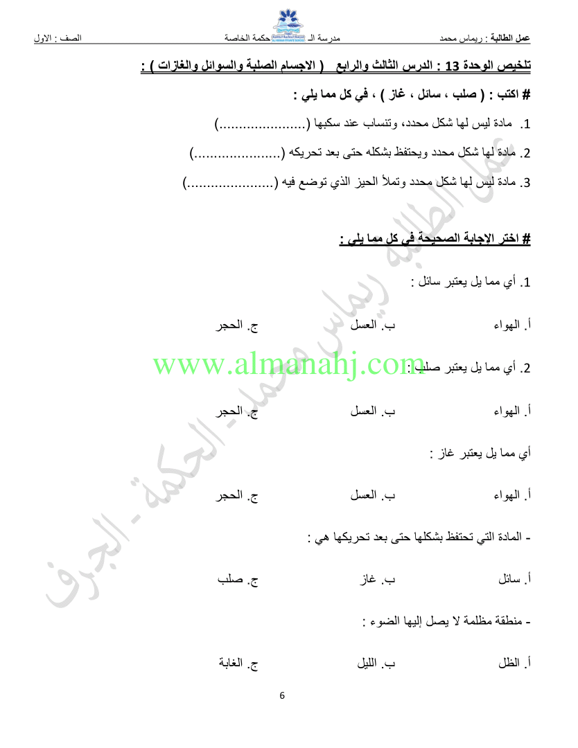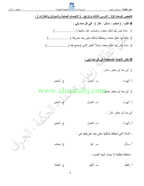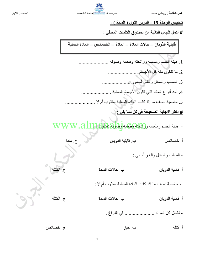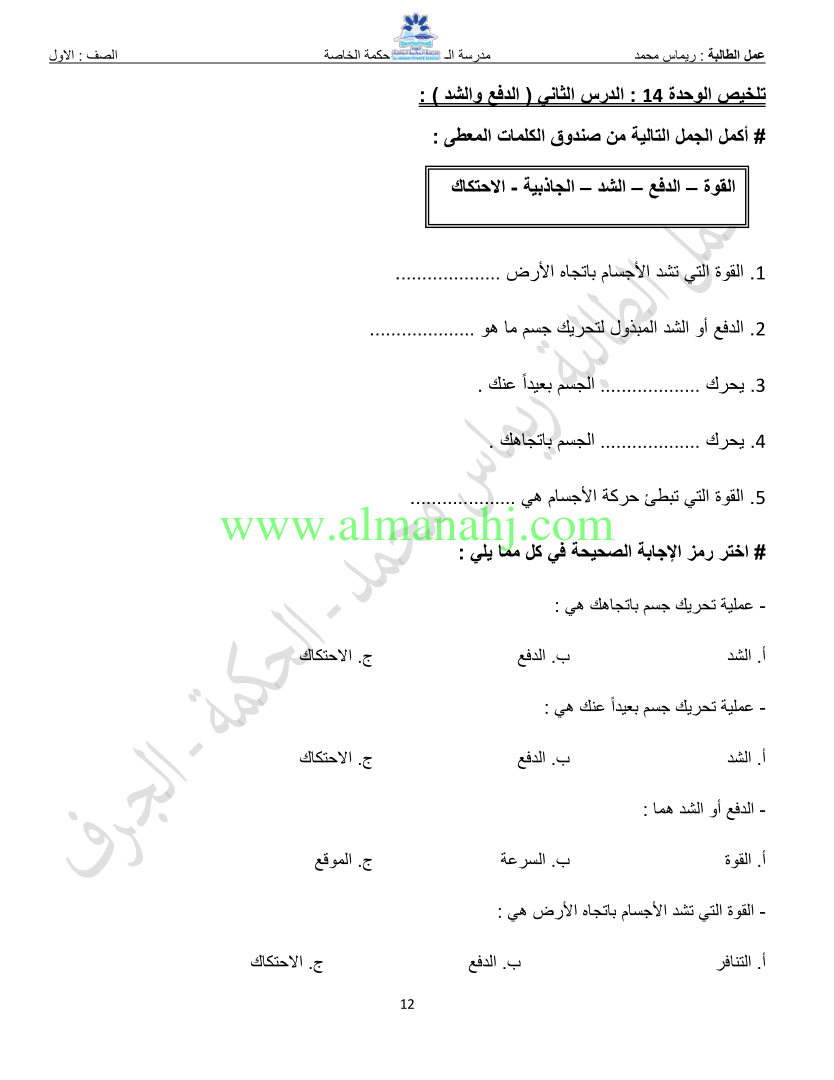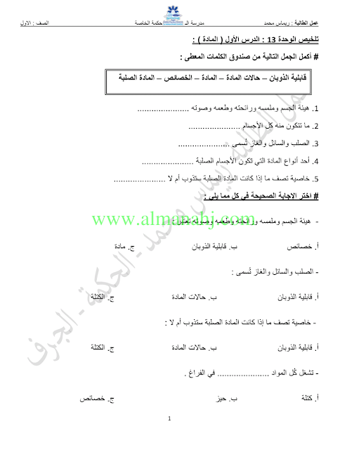 معلومات الملف: الصف الأول, الفصل الثالث, علوم, 2017-2018, تلخيص الوحدة 13 و 14 غير محلول | |||