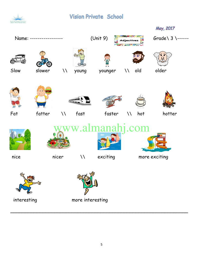 معلومات الملف: الصف الثالث, الفصل الثالث, لغة انكليزية, 2017-2018, اوراق عمل unit 9 | |||