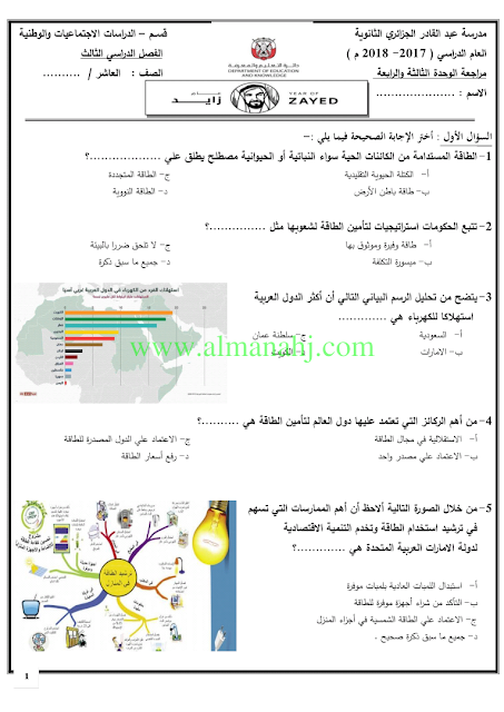 معلومات الملف: الصف العاشر, الفصل الثالث, اجتماعيات, 2017-2018, مراجعة الوحدتين الثالثة والرابعة | |||