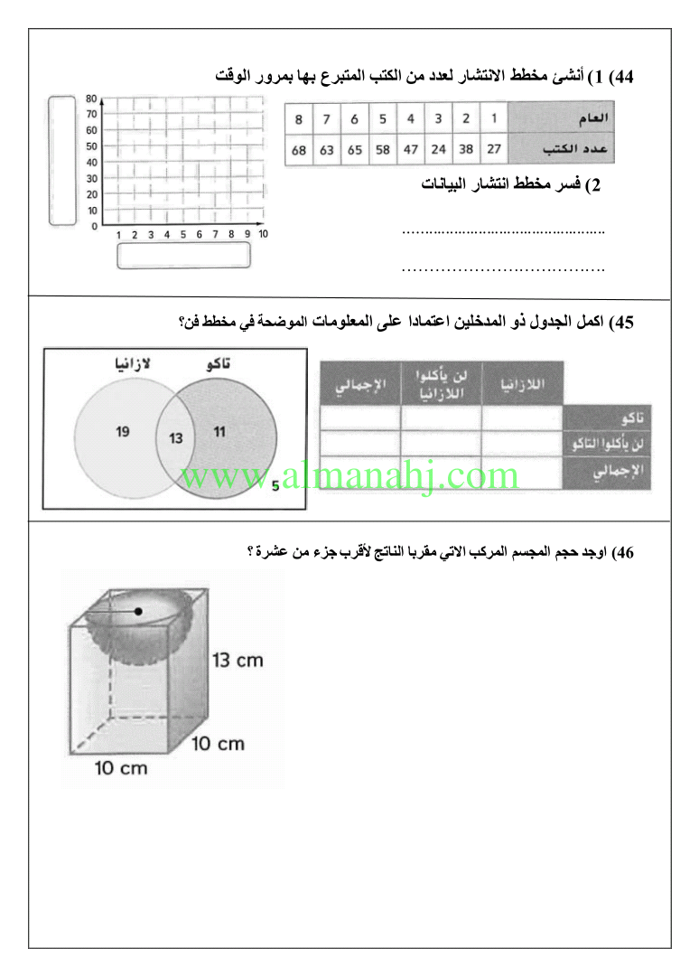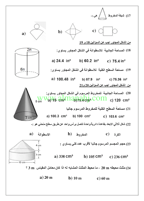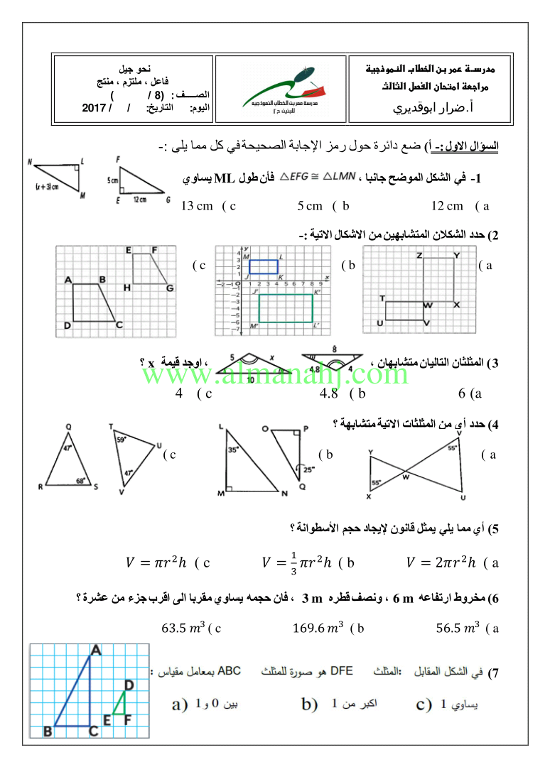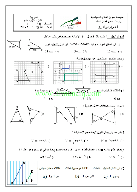 معلومات الملف: الصف الثامن, الفصل الثالث, رياضيات, 2017-2018, اختبار رياضيات شامل | |||