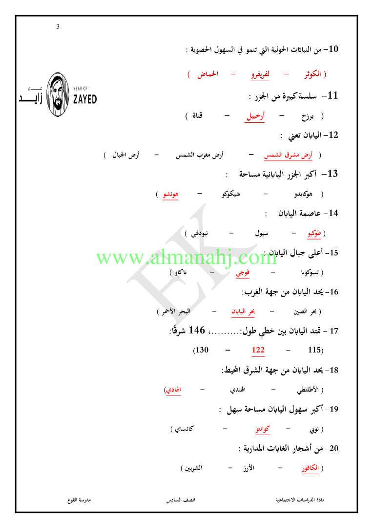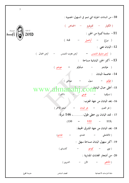 معلومات الملف: الصف السادس, الفصل الثالث, اجتماعيات, 2017-2018, مراجعة عامة للوحدة الاولى | |||