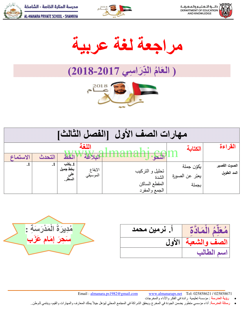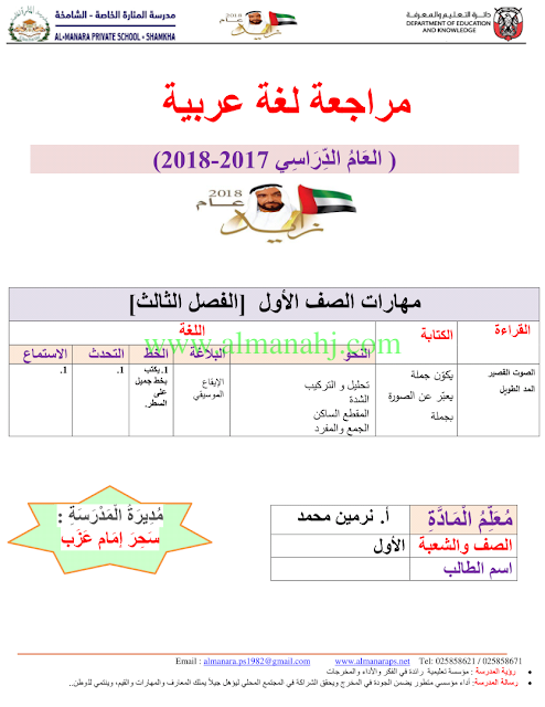 معلومات الملف: الصف الأول, الفصل الثالث, لغة عربية, 2017-2018, مراجعة لغة عربية | |||