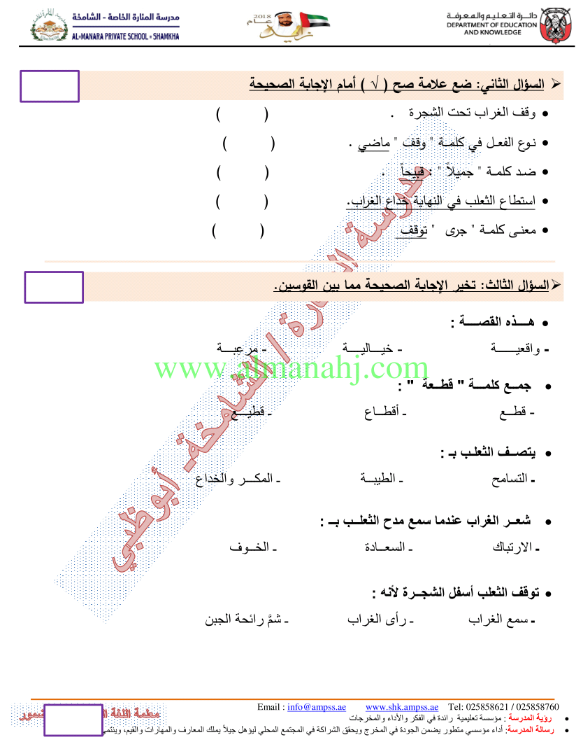 معلومات الملف: الصف الثاني, الفصل الثالث, لغة عربية, 2017-2018, مراجعة لغة عربية | |||