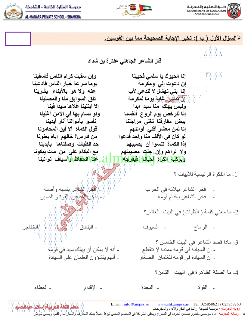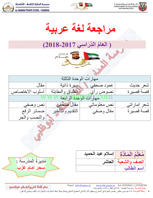 معلومات الملف: الصف العاشر, الفصل الثالث, لغة عربية, 2017-2018, مراجعة لغة عربية | |||