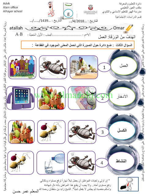 معلومات الملف: الصف الأول, الفصل الثالث, اجتماعيات, 2017-2018, العمل والحاجات | |||