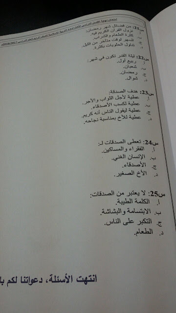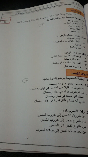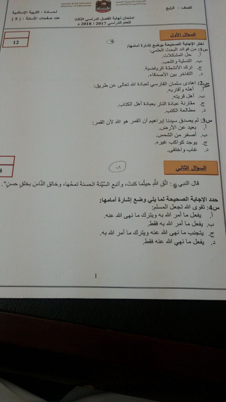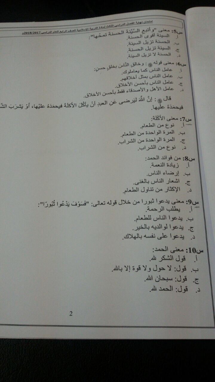 معلومات الملف: الصف الرابع, الفصل الثالث, تربية اسلامية, 2017-2018, امتحان نهاية الفصل الثالث لعام 2017-2018 | ||