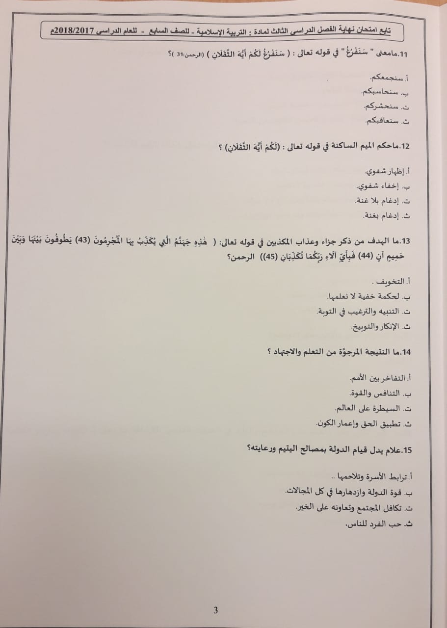 | أنت هنا: موقع المناهج ⇦ المناهج الإماراتية ⇦ الصف السابع ⇦ تربية اسلامية ⇦ الفصل الثالث ⇦ الامتحان النهائي |