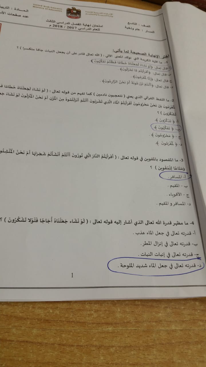 | أنت هنا: موقع المناهج ⇦ المناهج الإماراتية ⇦ الصف التاسع ⇦ تربية اسلامية ⇦ الفصل الثالث ⇦ الامتحان النهائي |