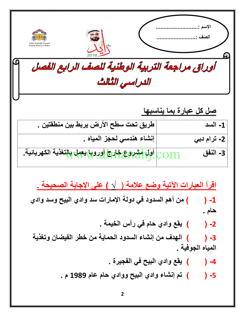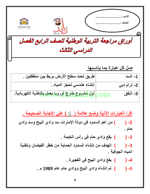 معلومات الملف: الصف الرابع, الفصل الثالث, اجتماعيات, 2017-2018, اوراق مراجعة تربية وطنية فصل ثالث | |||