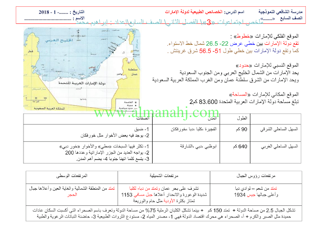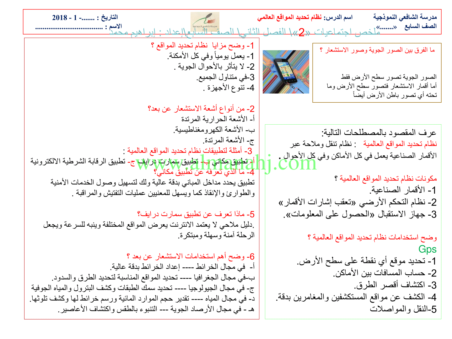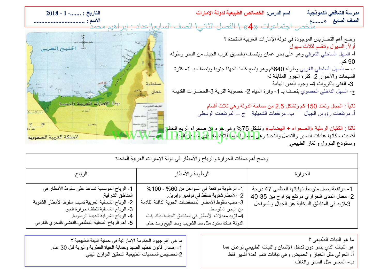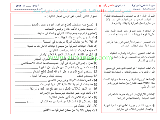 معلومات الملف: الصف السابع, الفصل الثاني, اجتماعيات, 2017-2018, ملخص شامل لمادة الاجتماعيات الفصل الثاني | |||