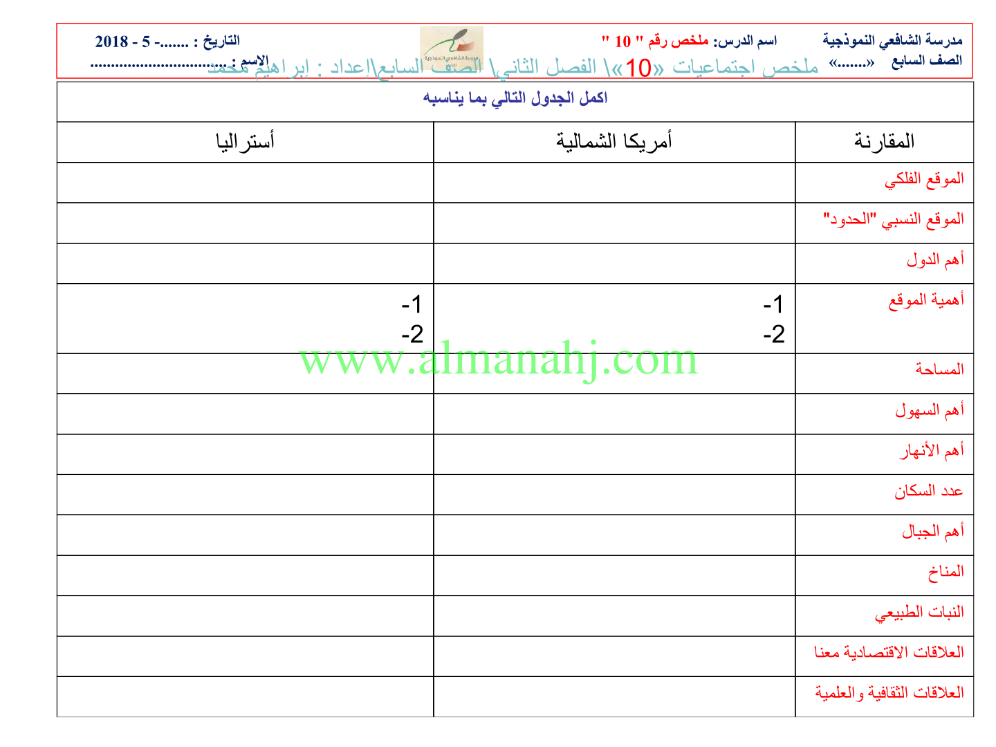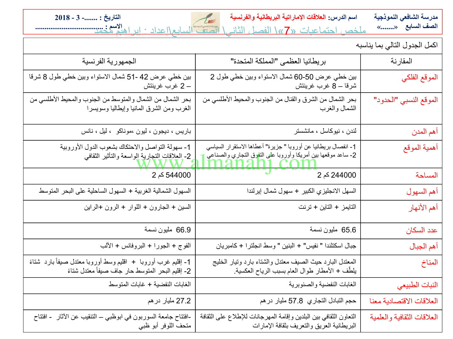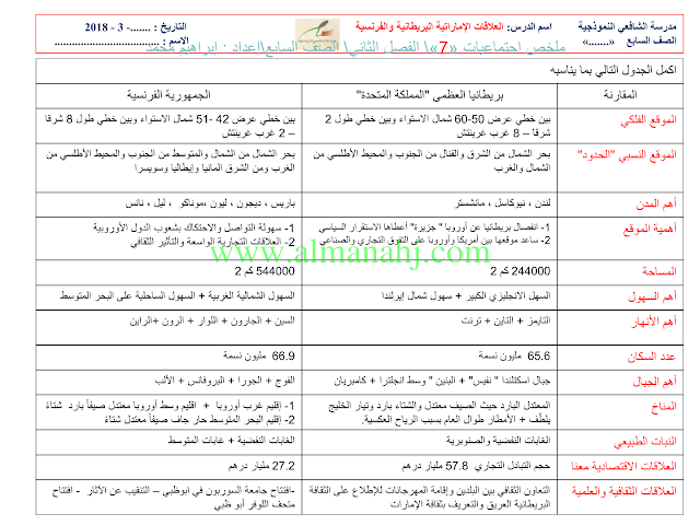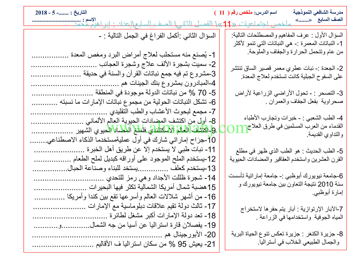 معلومات الملف: الصف السابع, الفصل الثاني, اجتماعيات, 2017-2018, ملخص شامل لمادة الاجتماعيات الفصل الثاني | |||