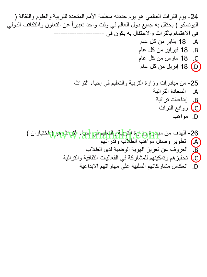 السابق: امتحان نهاية الفصل الثالث لعام | الملف الحالي: 4887 | التالي: نموذج أسئلة الاختبار التشخيصي من مدرسة الجرف | |
