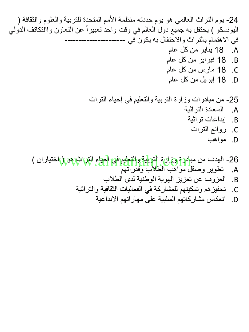 | السابق: امتحان نهاية الفصل الثالث لعام | الملف الحالي: 4887 | التالي: عرض بوربوينت حل مراجعة نهائية وفق الهيكل الوزاري الجديد | |