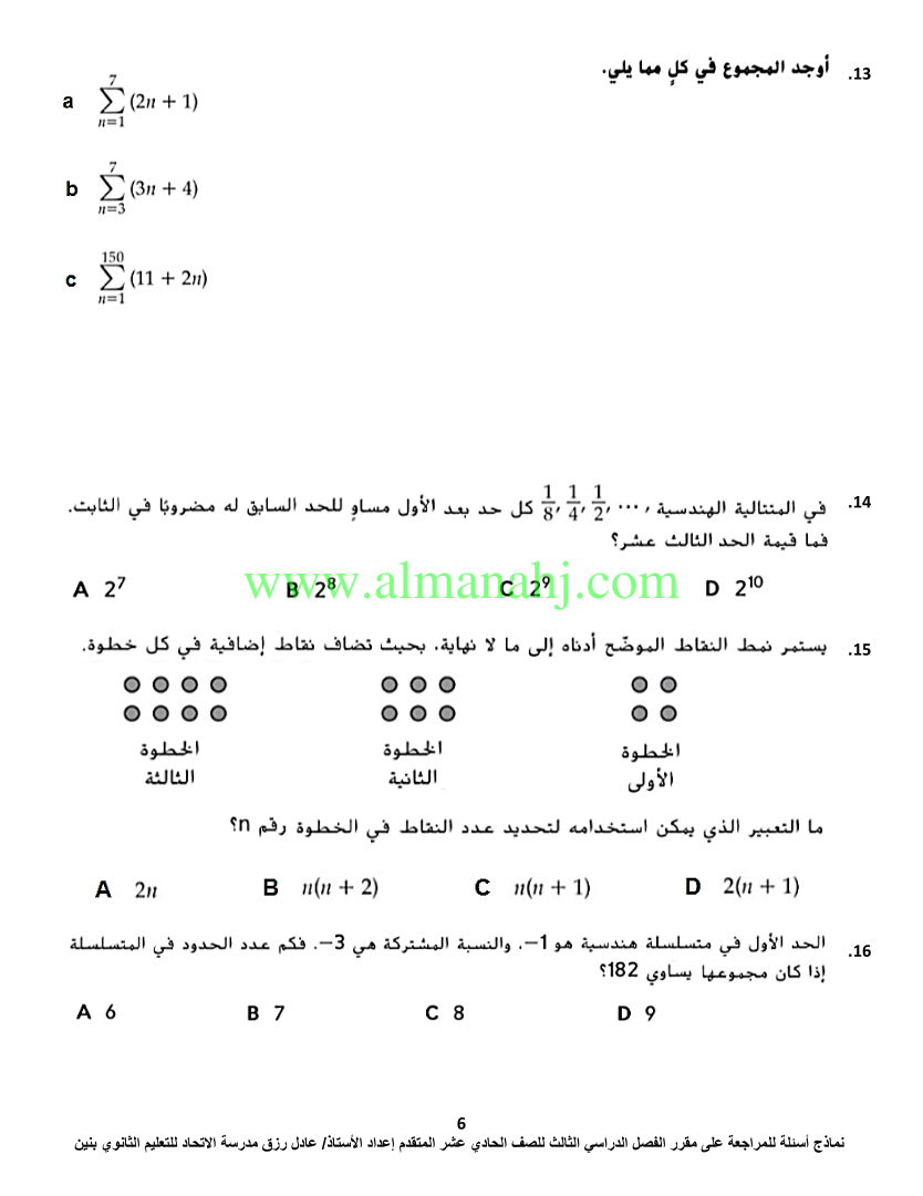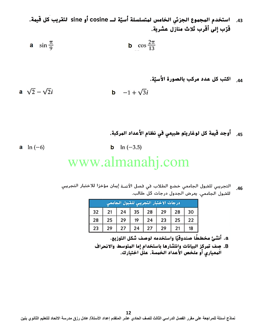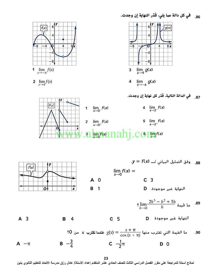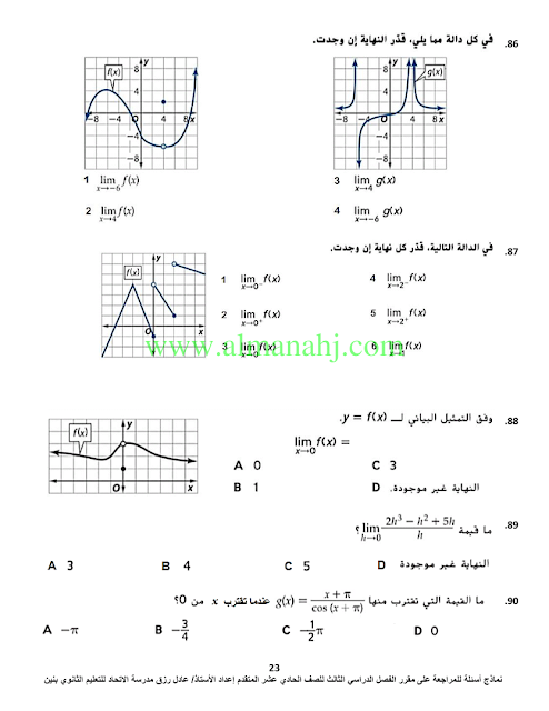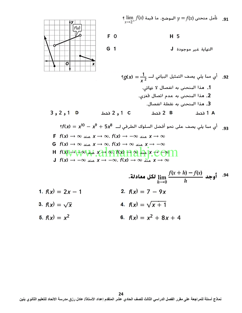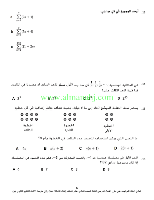 معلومات الملف: الصف الحادي عشر المتقدم, الفصل الثالث, رياضيات, 2017-2018, اسئلة مراجعة لمادة الرياضيات | |||