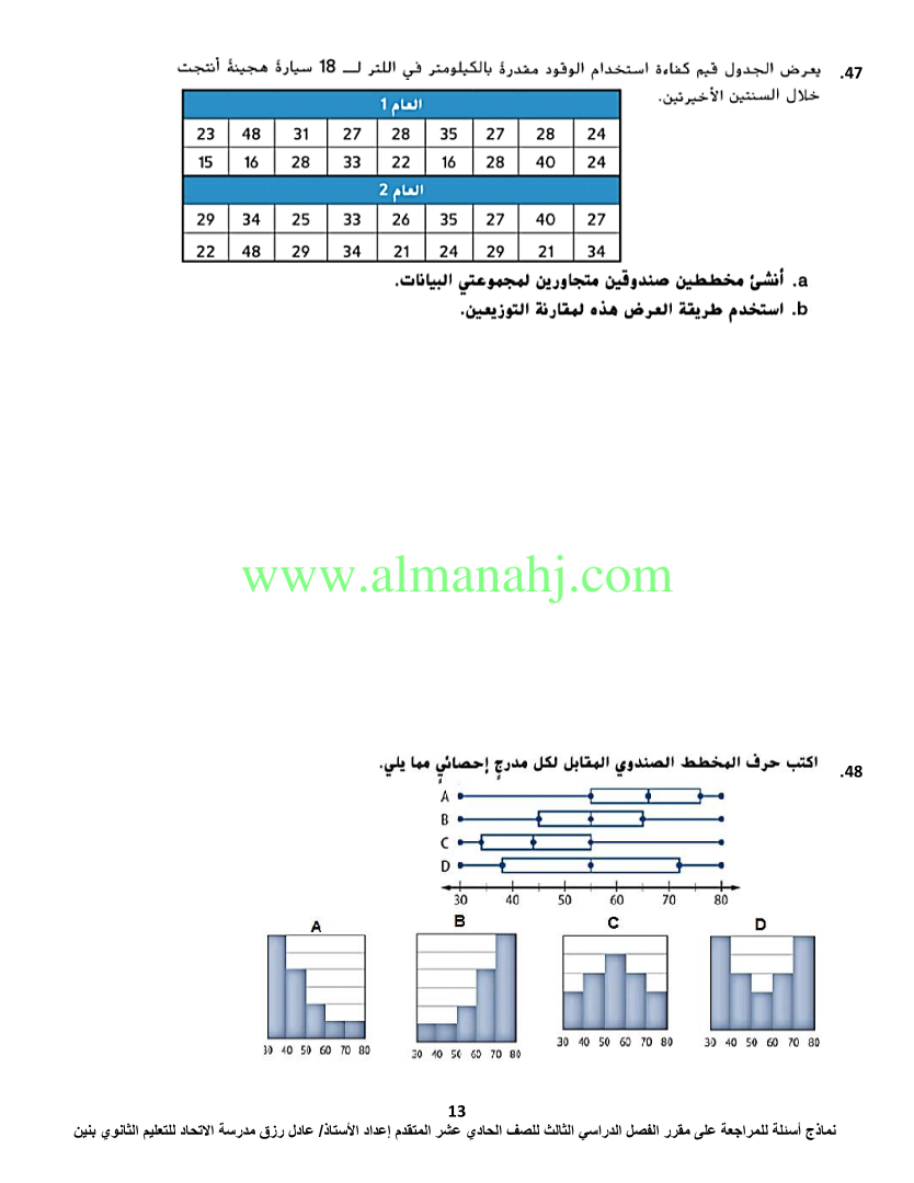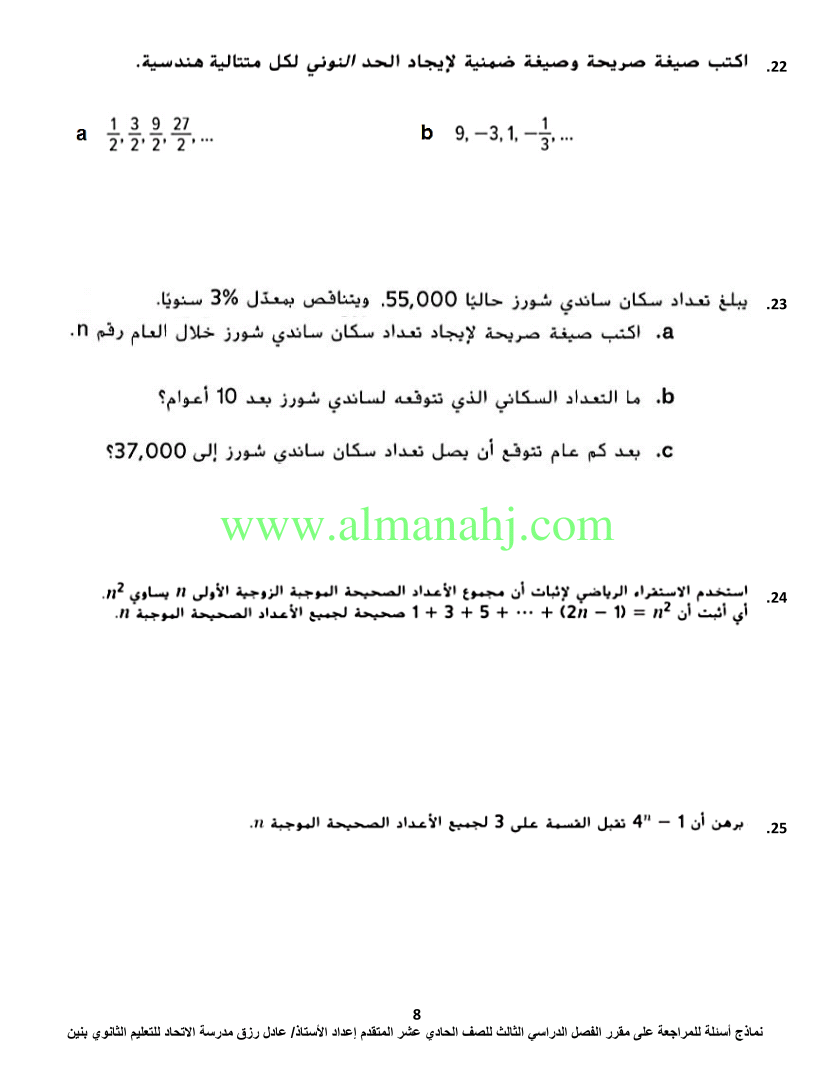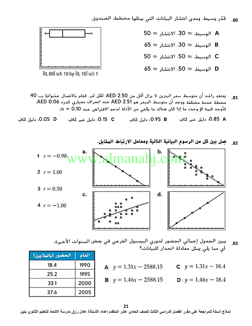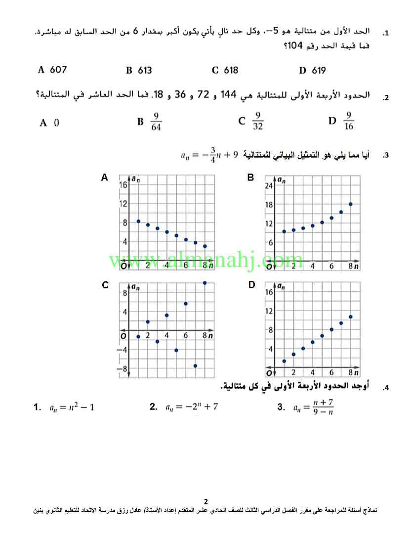 معلومات الملف: الصف الحادي عشر المتقدم, الفصل الثالث, رياضيات, 2017-2018, اسئلة مراجعة لمادة الرياضيات | |||