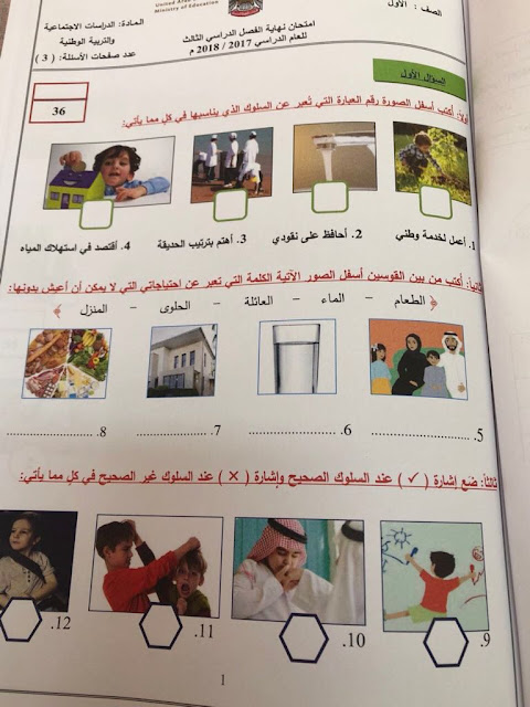 معلومات الملف: الصف الأول, الفصل الثالث, اجتماعيات, 2017-2018, امتحان نهاية الفصل الثالث لعام 2017-2018