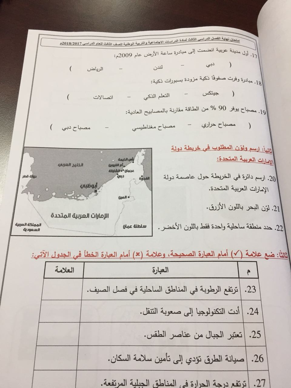 معلومات الملف: الصف الثالث, الفصل الثالث, اجتماعيات, 2017-2018, امتحان نهاية الفصل الثالث لعام 2017-2018 | ||