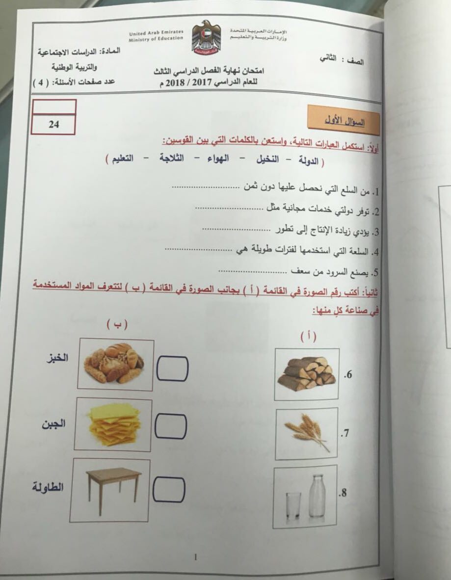 | أنت هنا: موقع المناهج ⇦ المناهج الإماراتية ⇦ الصف الثاني ⇦ اجتماعيات ⇦ الفصل الثالث ⇦ الامتحان النهائي |