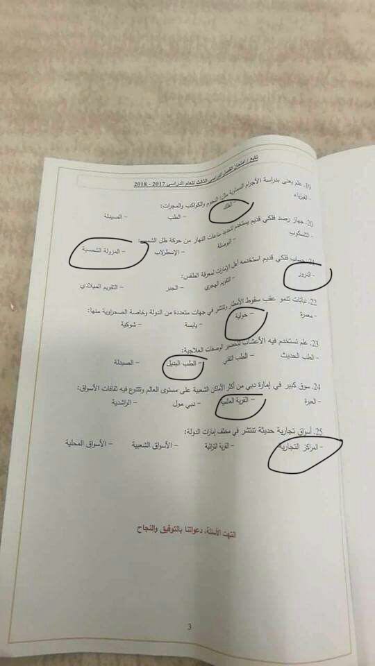 معلومات الملف: الصف الخامس, الفصل الثالث, اجتماعيات, 2017-2018, امتحان نهاية الفصل الثالث لعام 2017-2018 | ||