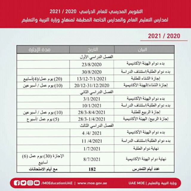| التقويم المدرسي لثلاثة اعوام دراسية مقبلة ابتداءً من | ||
